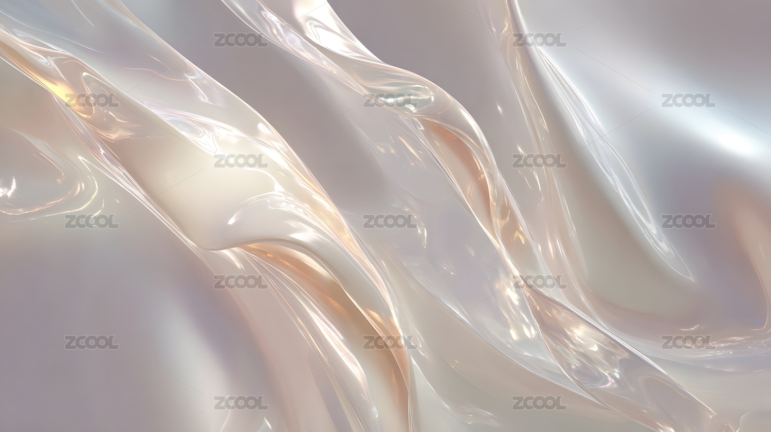 晶莹反射光影起伏波浪流淌透明液体3d插画