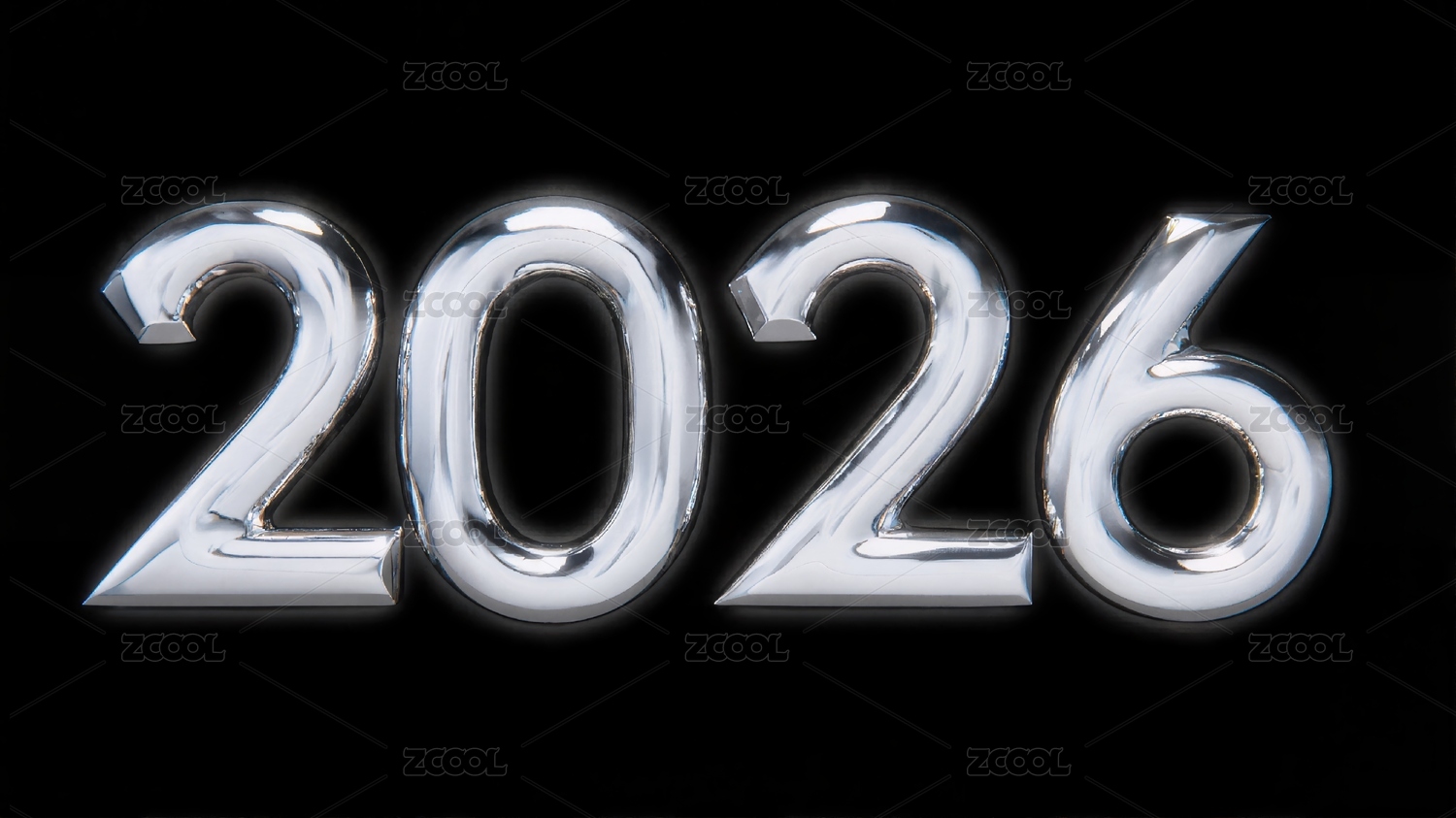 2026,马年,节日,数字,黑色,反光,金属,立体,黑色背景,光滑