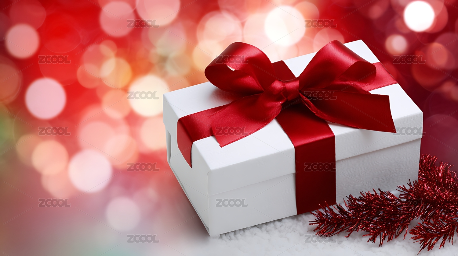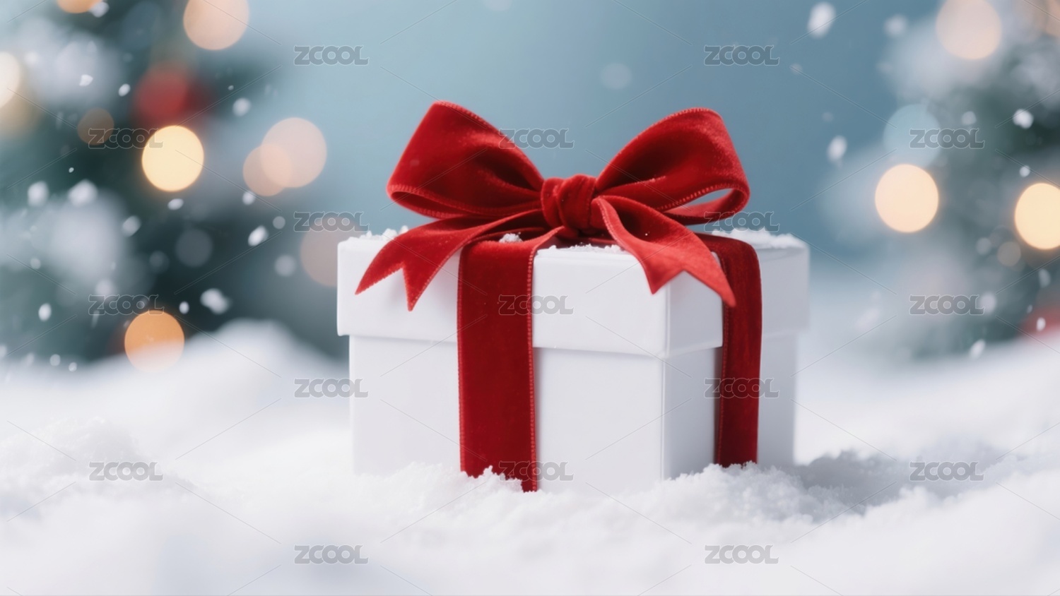 圣诞树,雪花,雪地,小灯,光斑,圣诞,礼物,礼盒,白,丝带