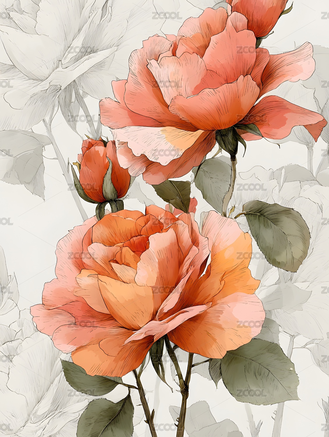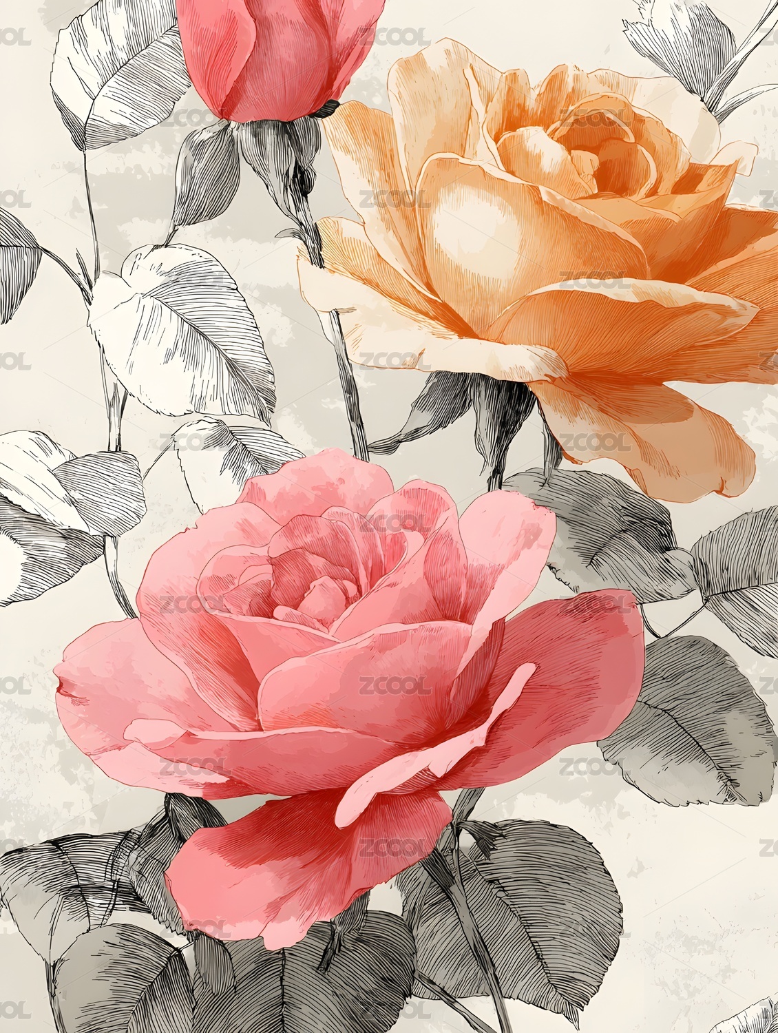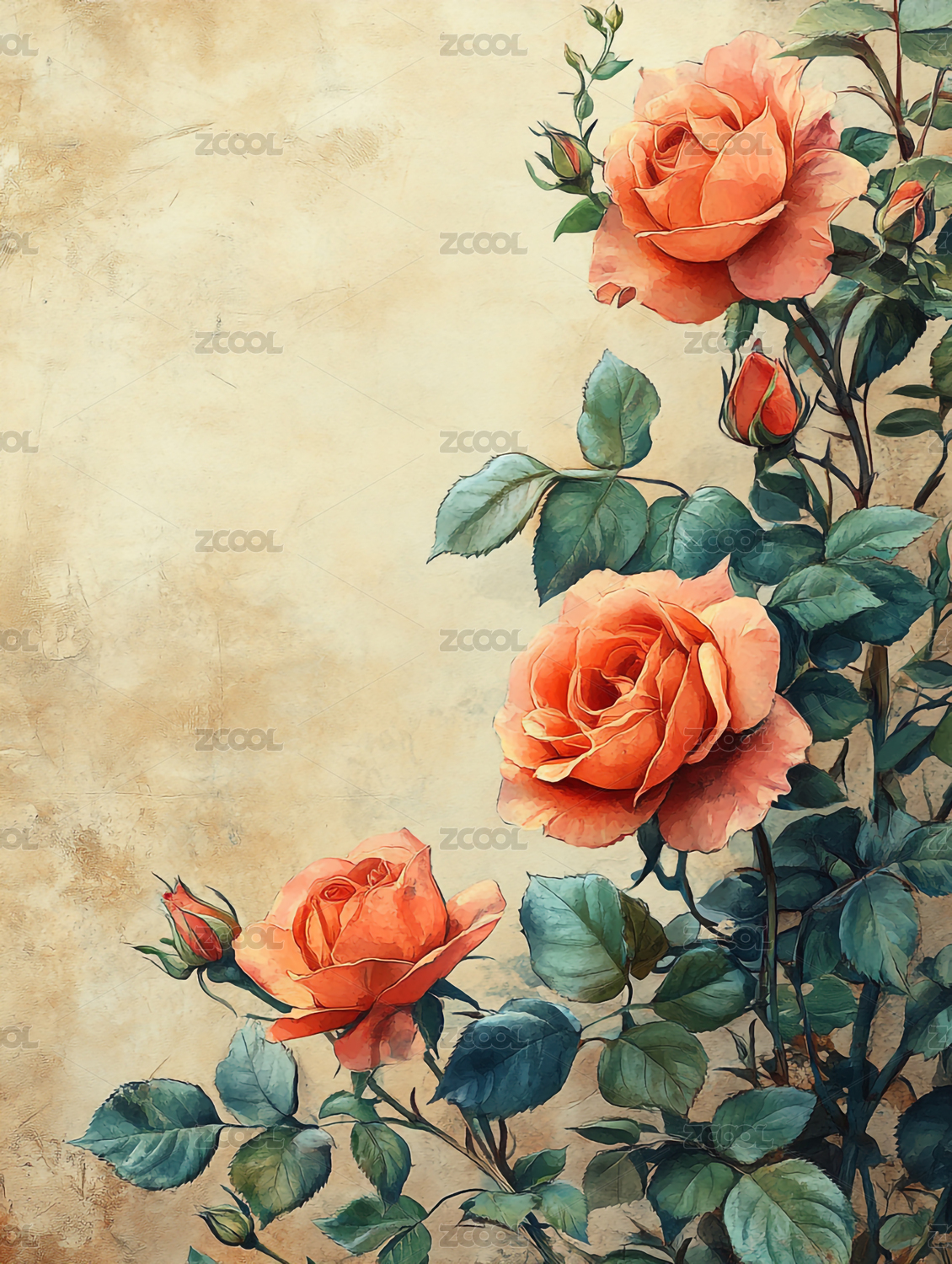 玫瑰,粉色,花卉,复古,水彩,植物,浪漫,花瓣,壁纸,背景