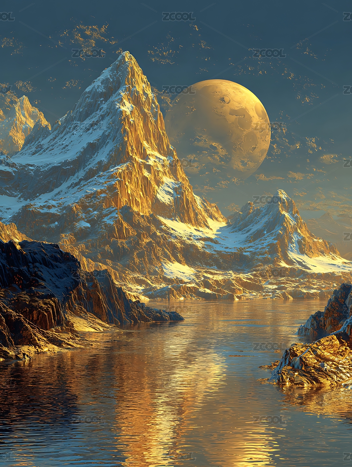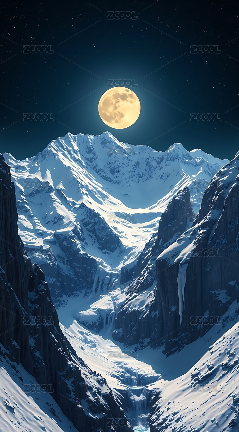 雪山,月亮,夜景,山峰,寒冷,宁静,自然风光,高山,月光,星空