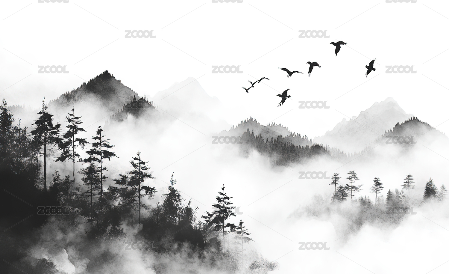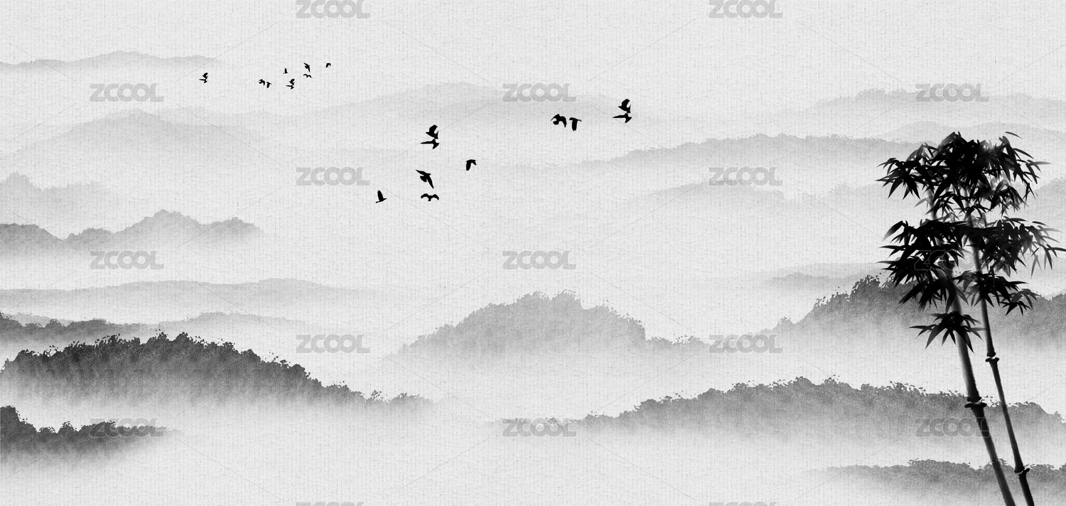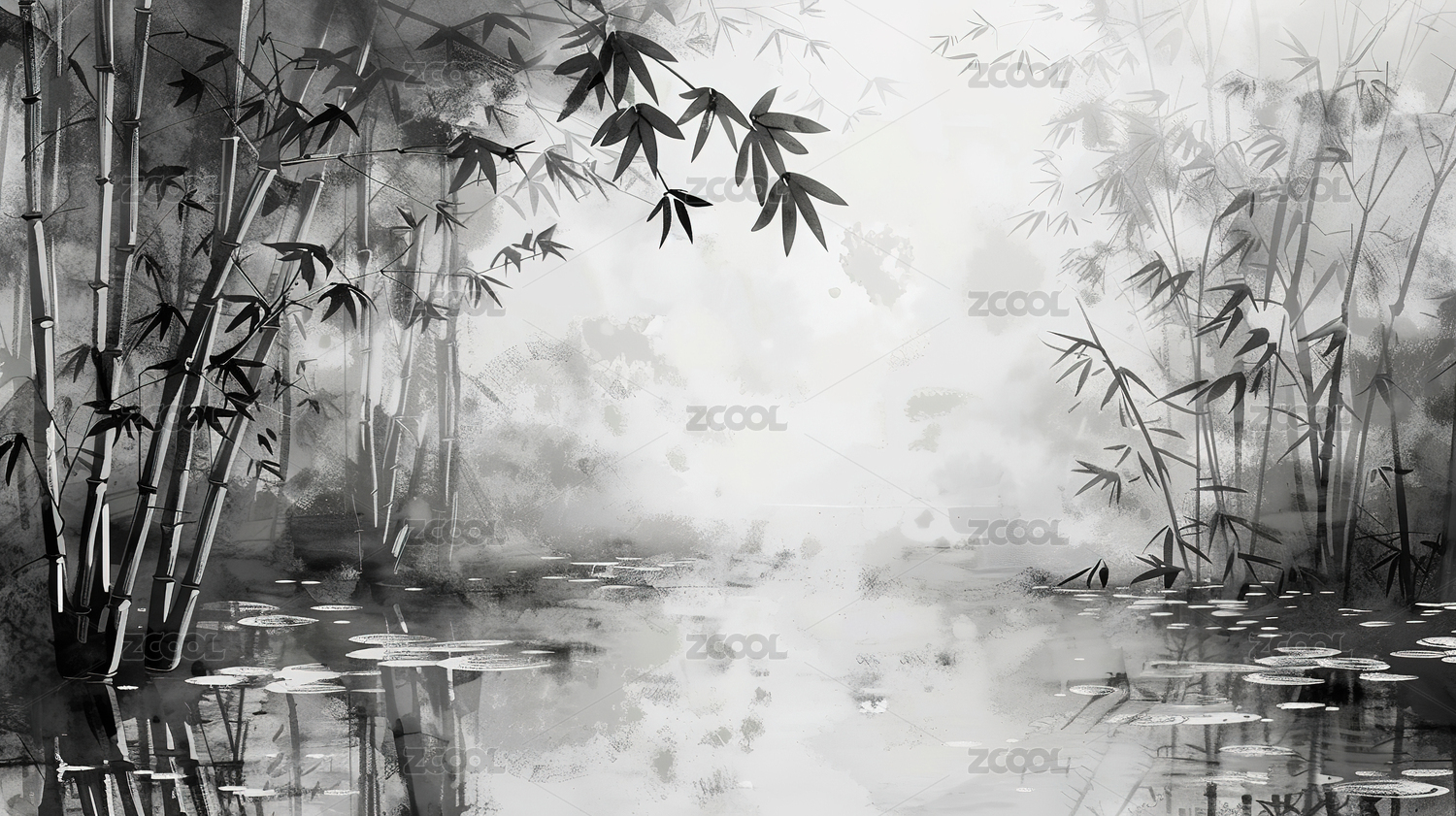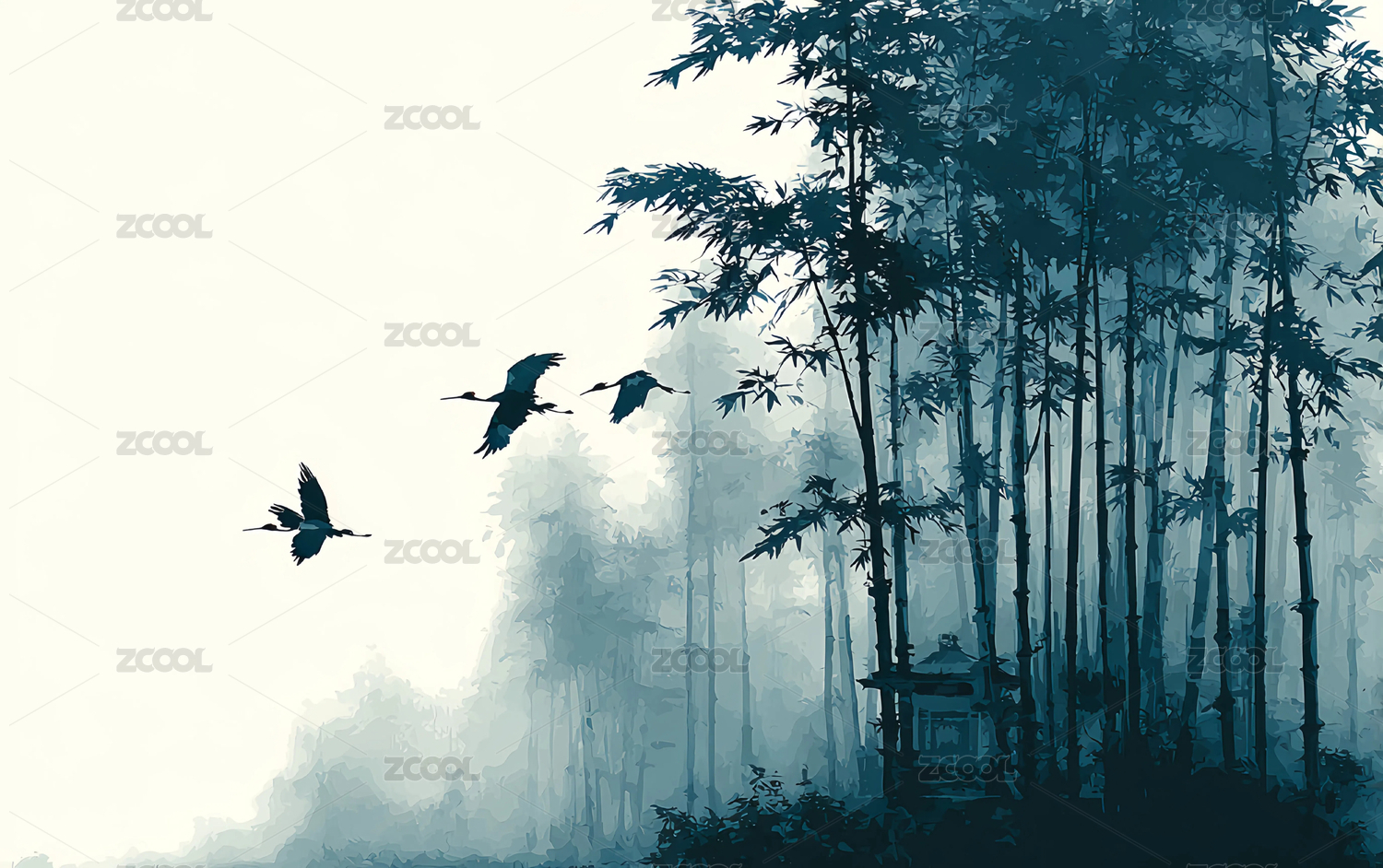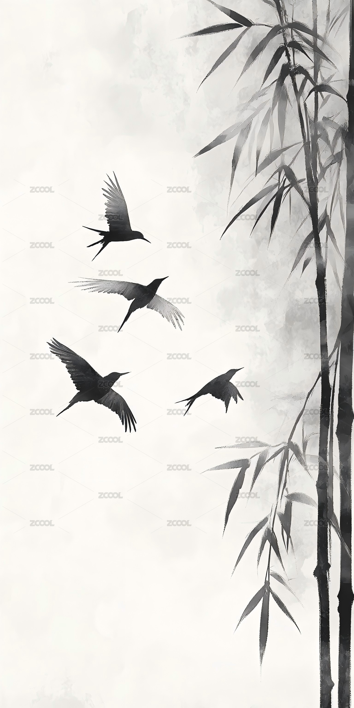 墨竹禽鸟,意境风格,水墨美学,传统艺术,水墨国风山水