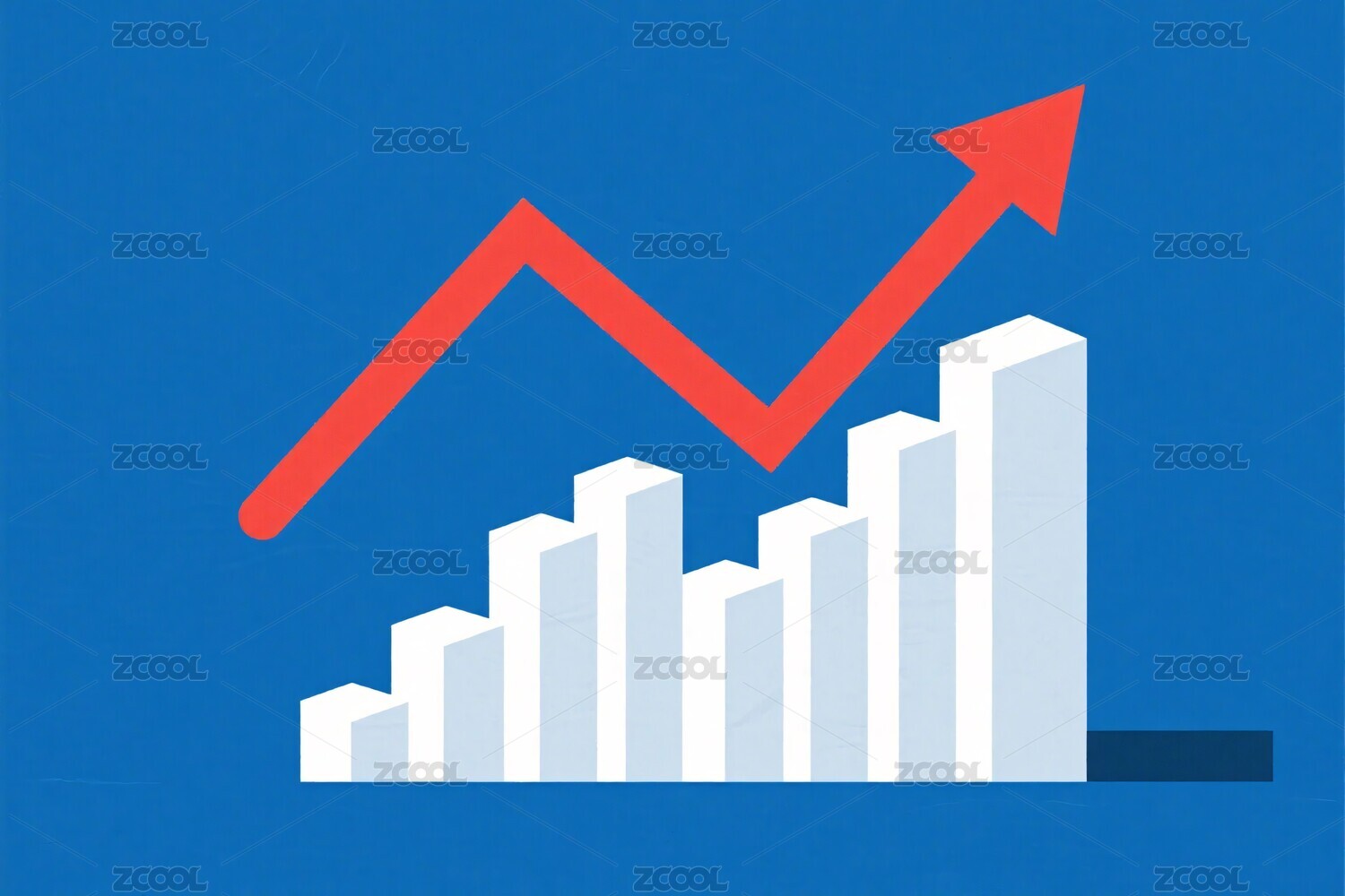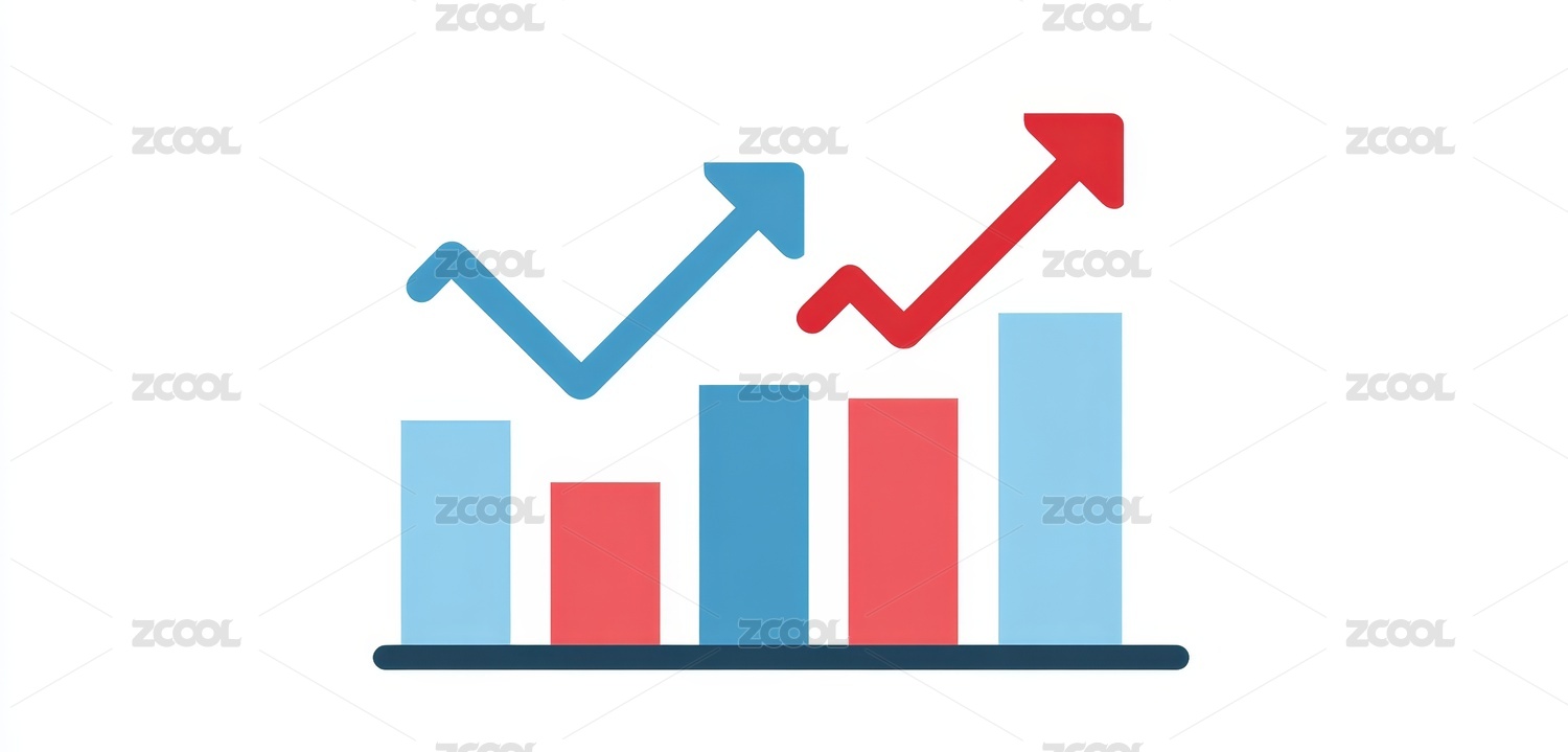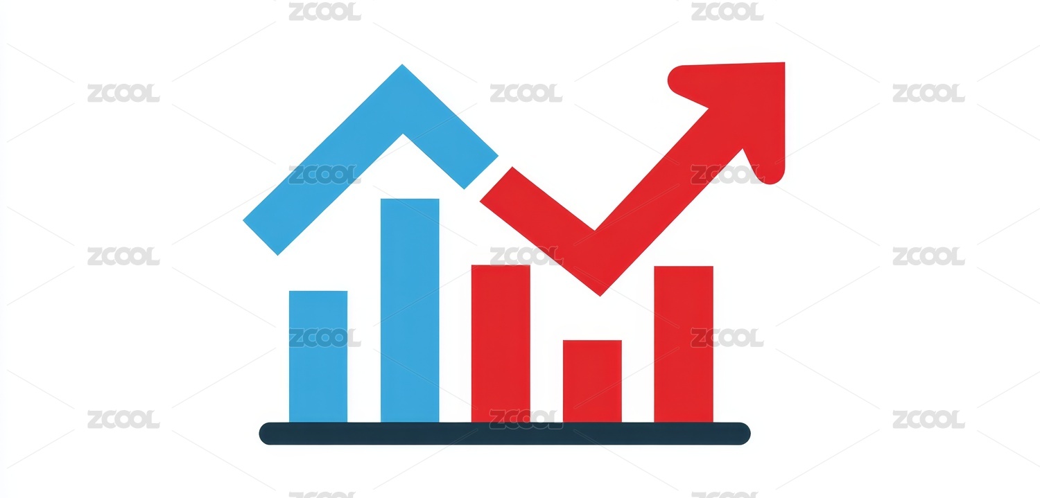 红蓝柱状图上升箭头标志
