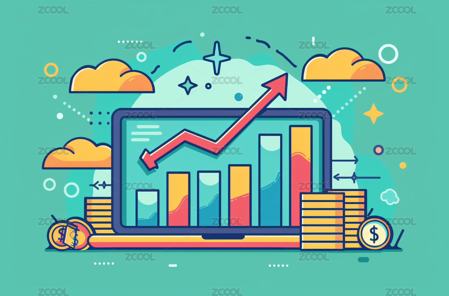 增长趋势金融图表插画