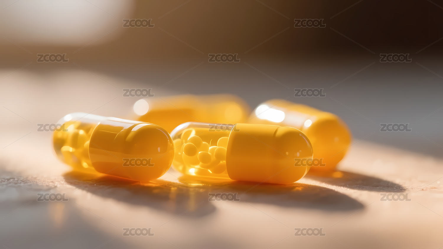 黄色胶囊药丸的柔和光线