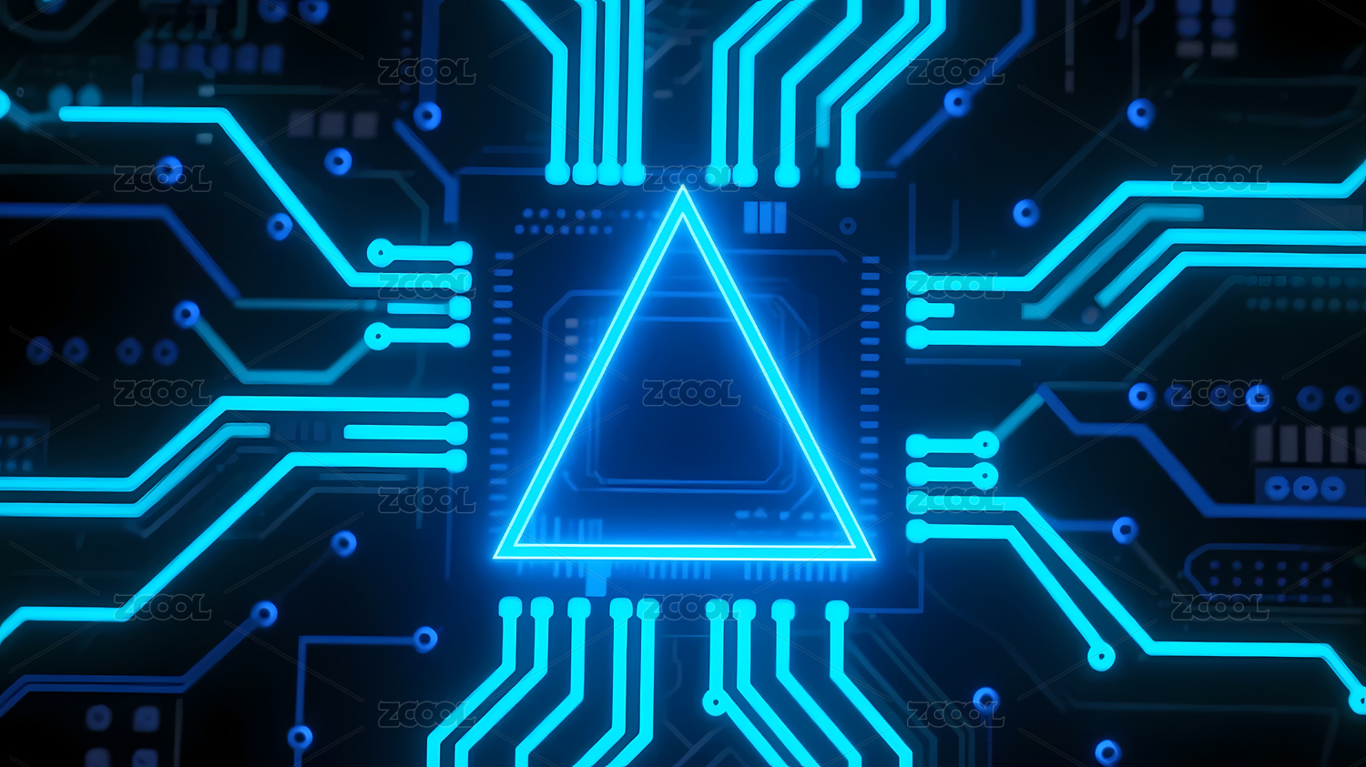 蓝色三角形环绕电路板