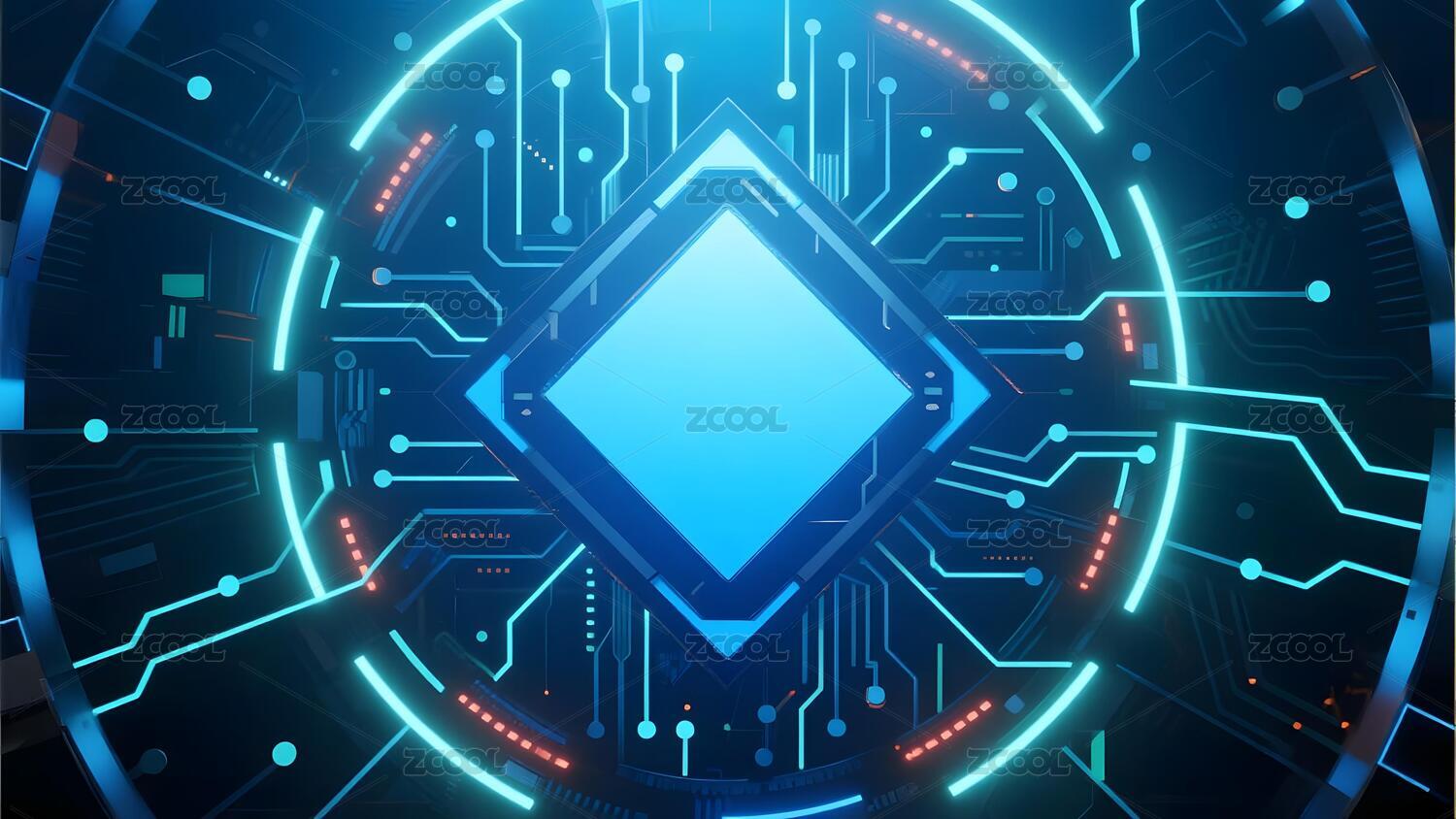 发光蓝色菱形与电路背景