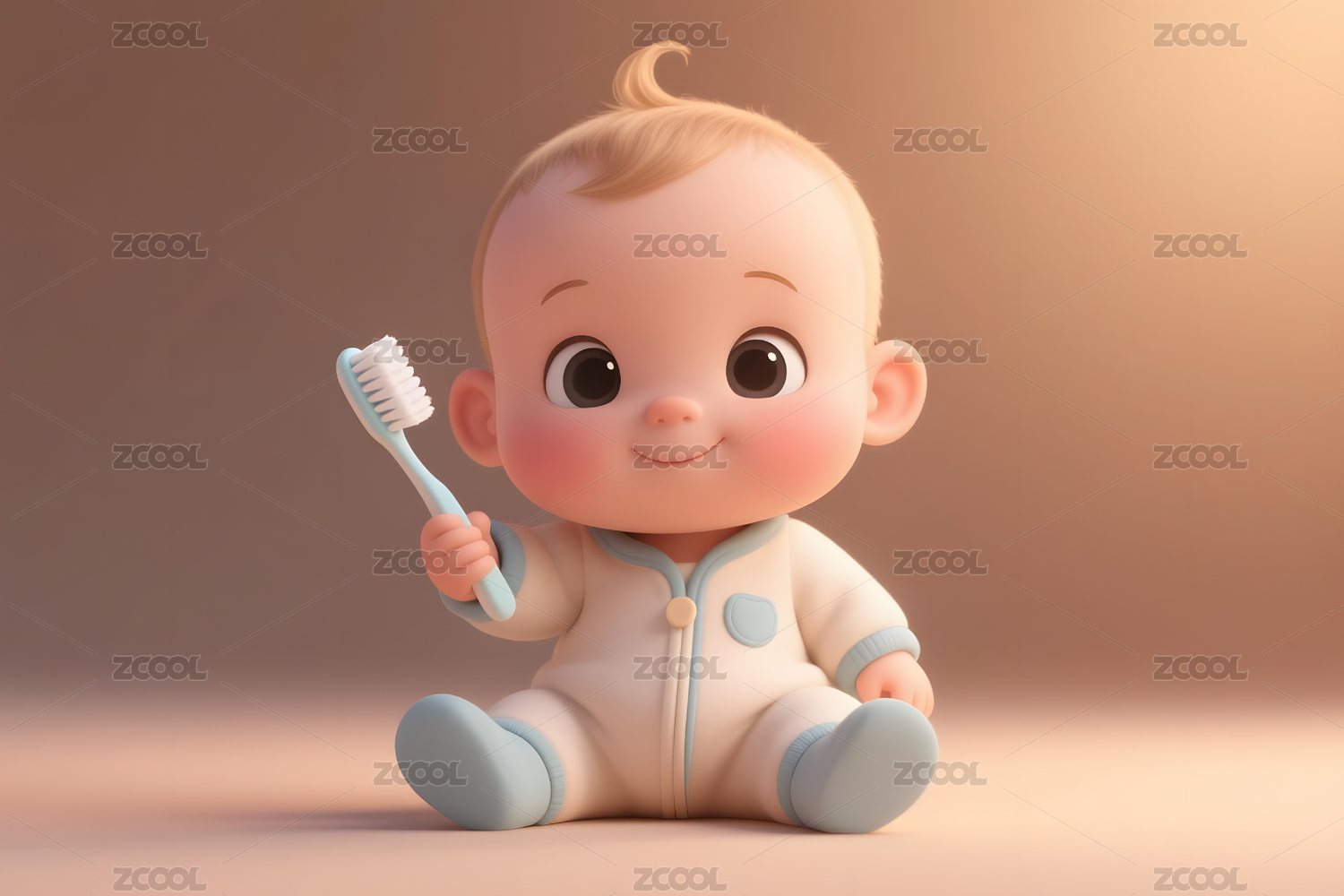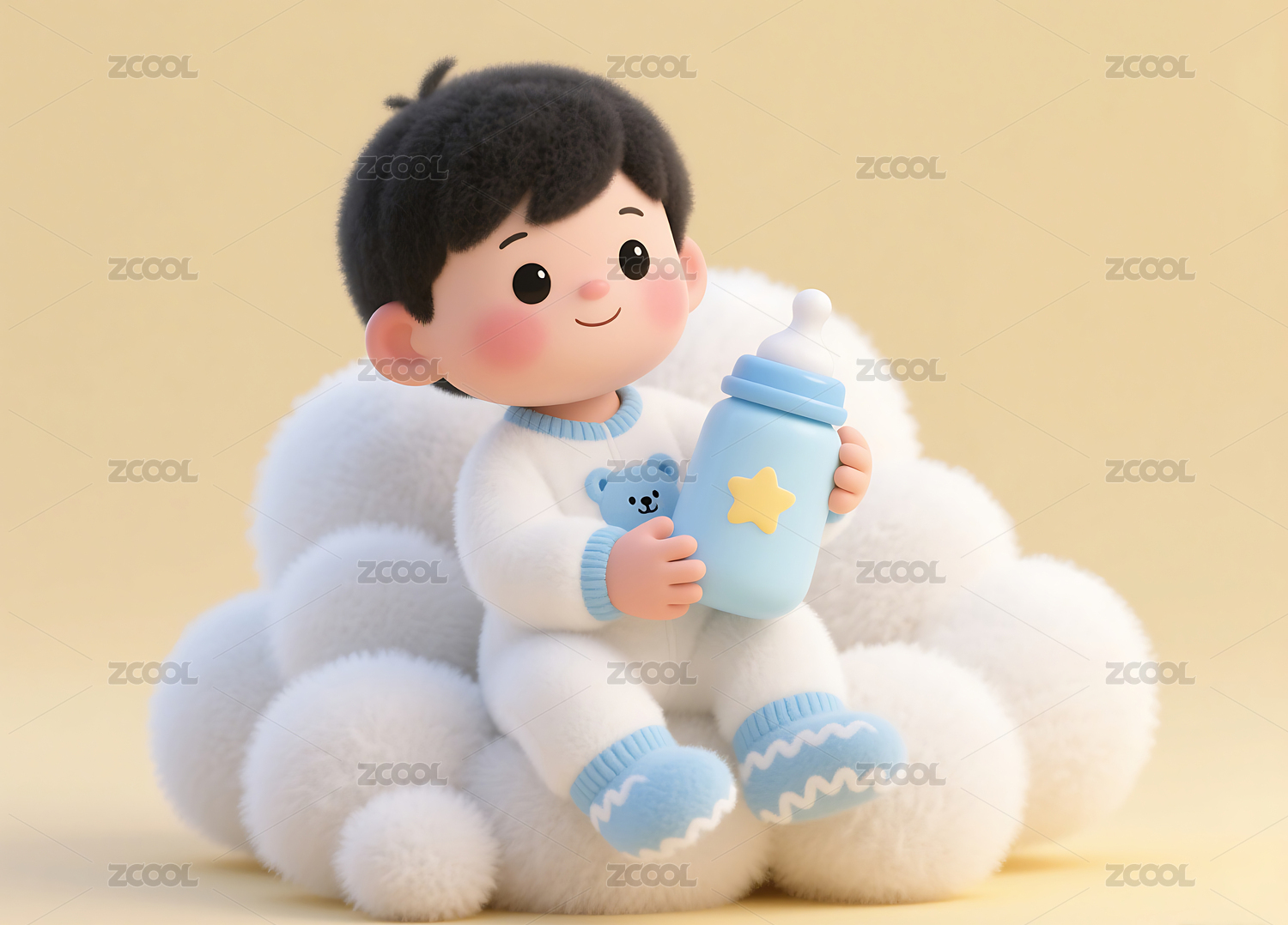 3D羊毛毡毛绒绒风格小男孩抱着奶瓶模型
