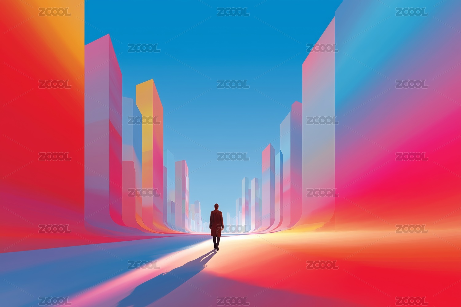 抽象,几何,色彩,艺术,插画,现代,空间,人物,剪影,梦幻