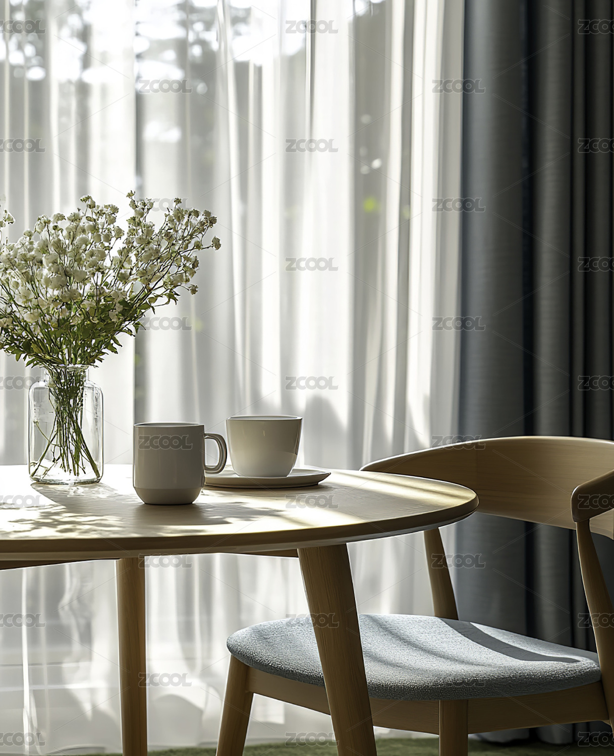 简约室内的圆桌和花瓶