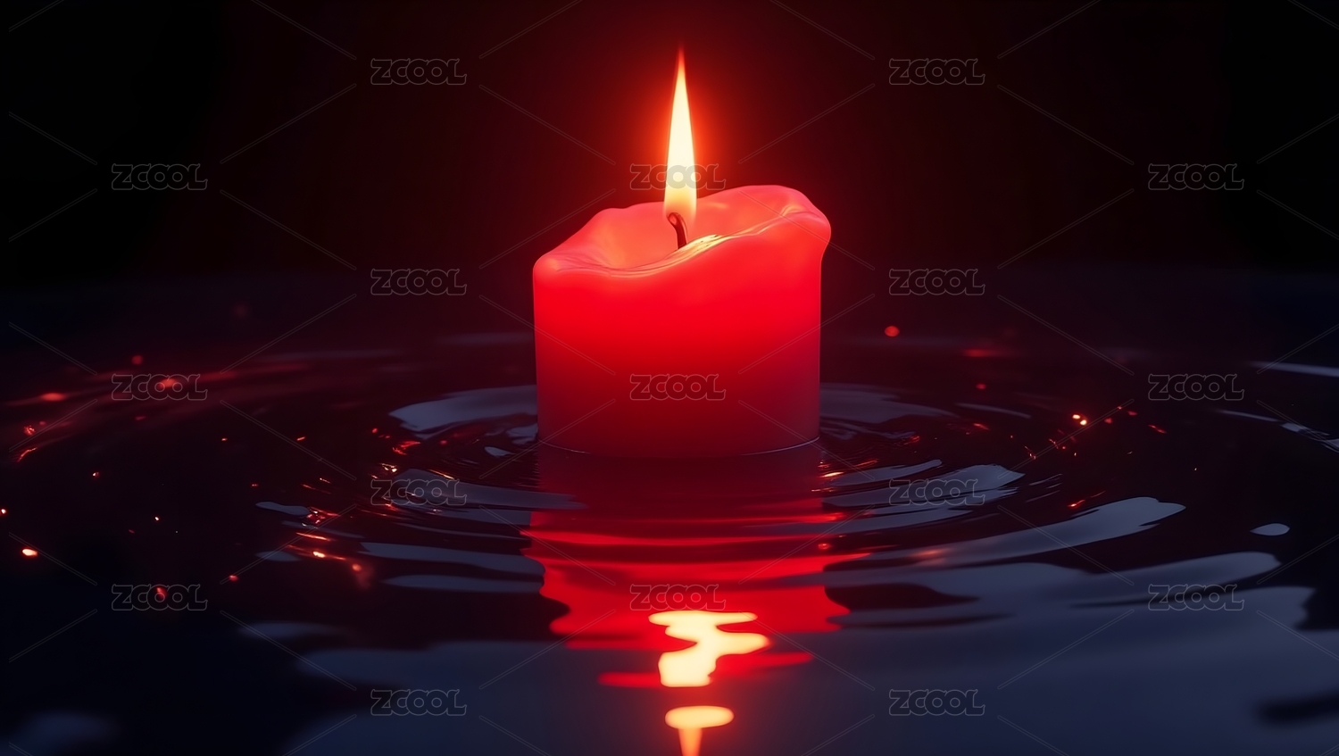 水中燃烧的红蜡烛