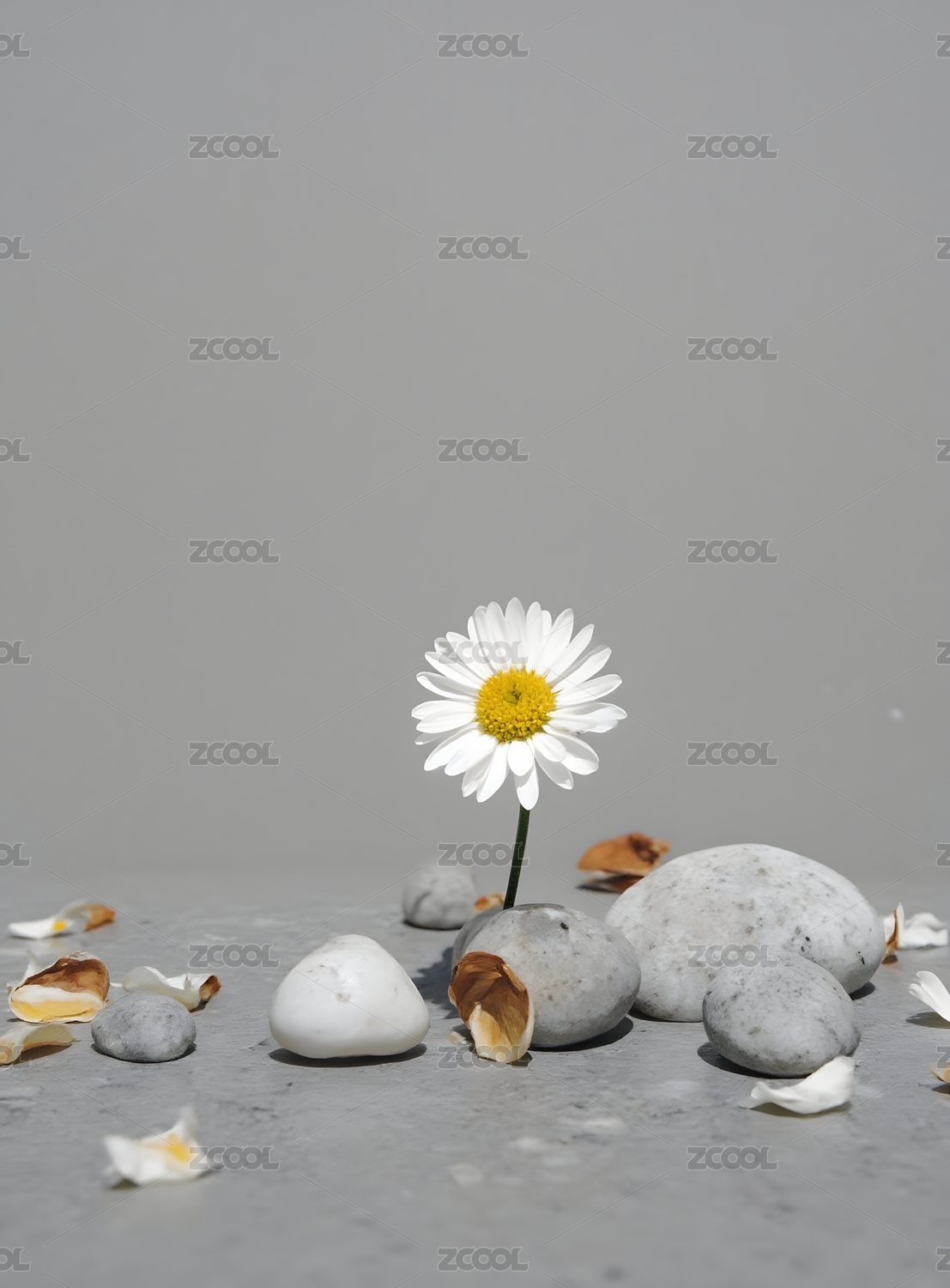 简约禅意石块与雏菊花