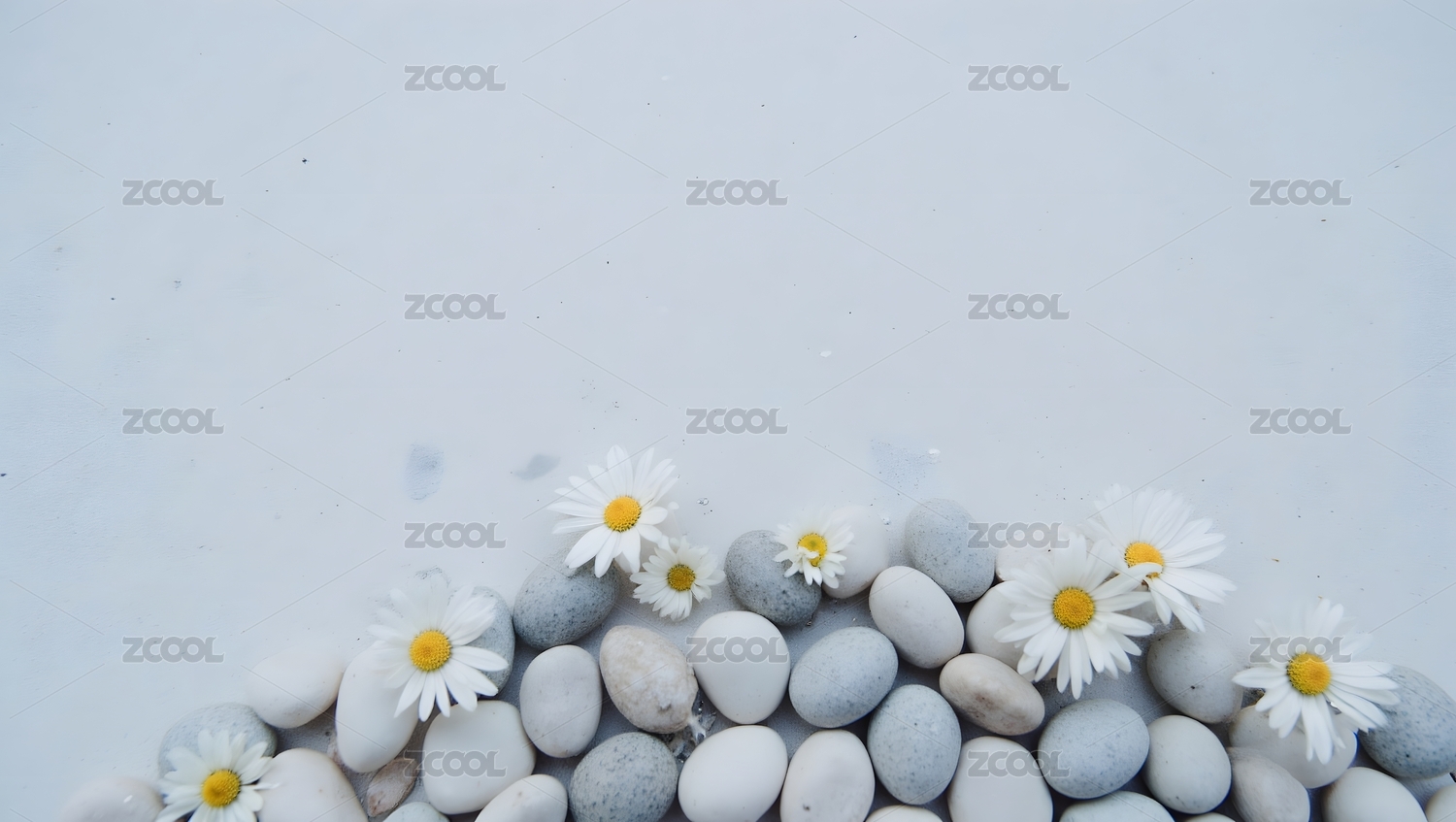 白色雏菊花与鹅卵石组合