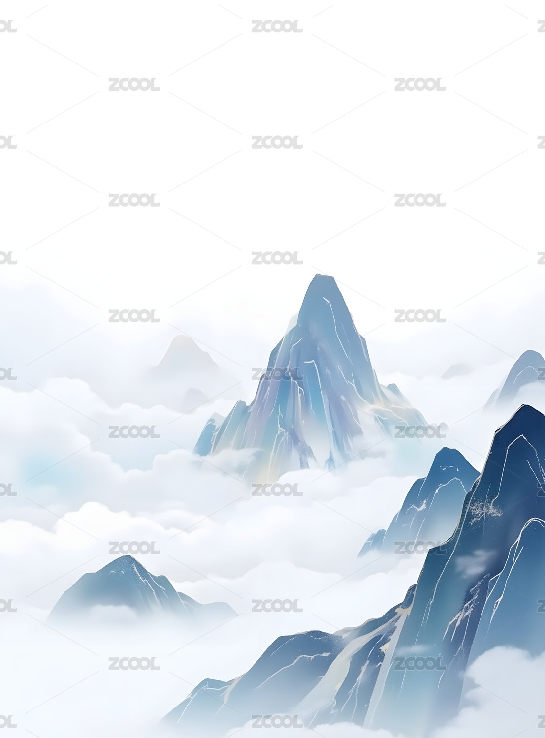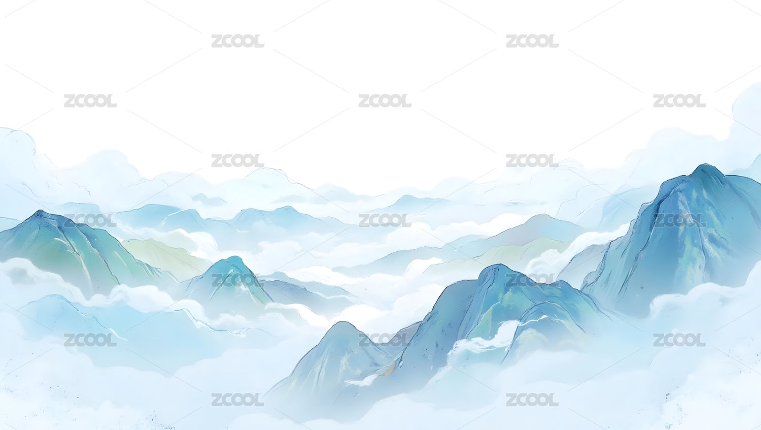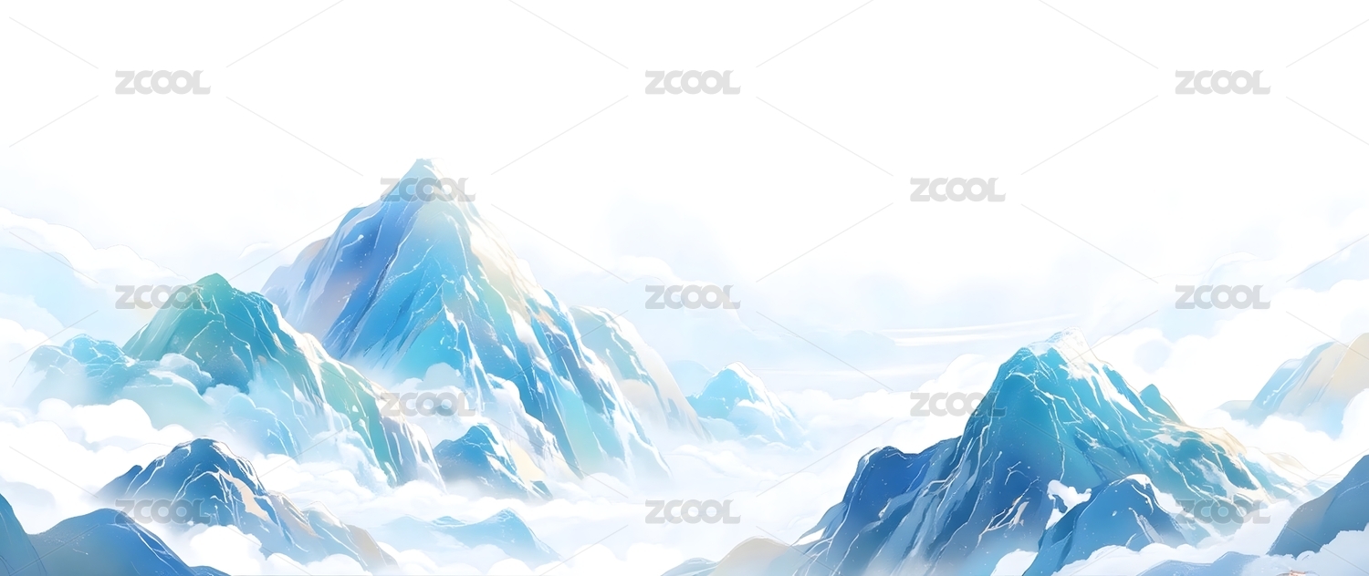 白色云山插画