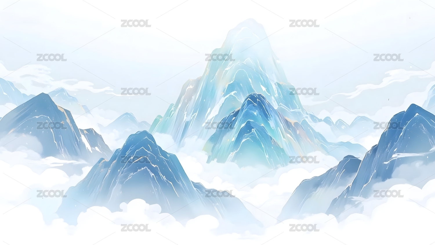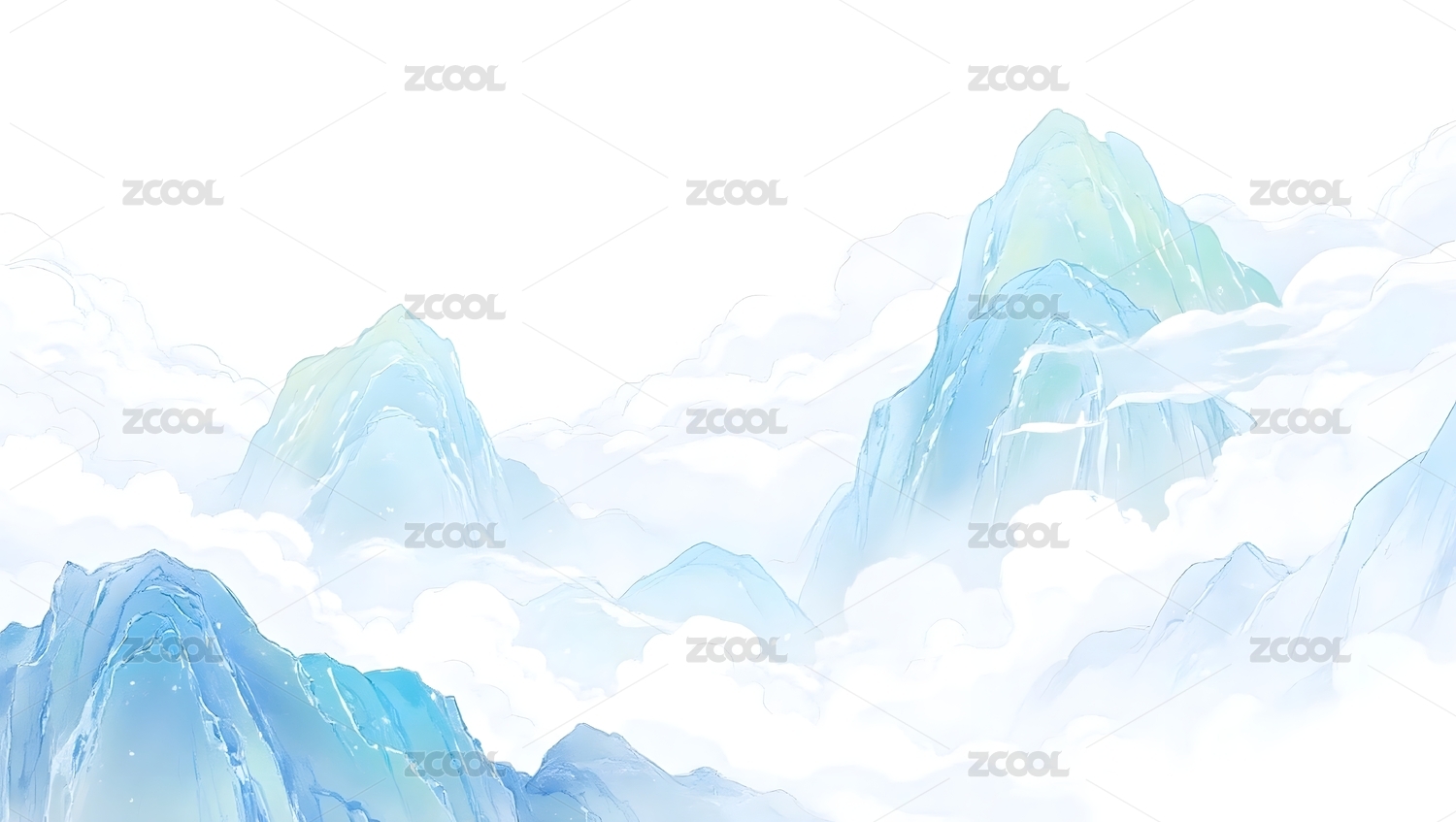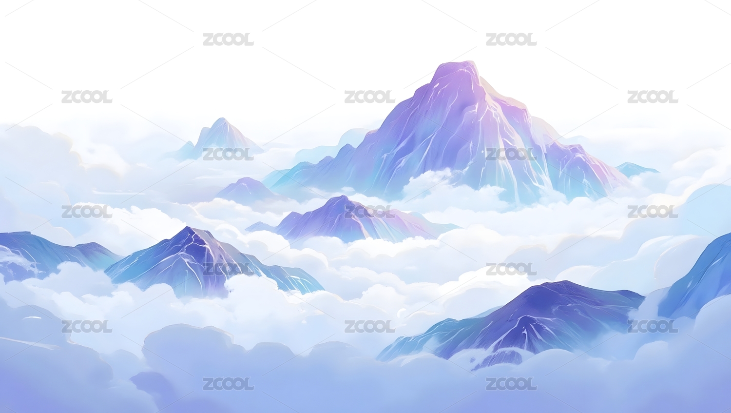 白色云山插画