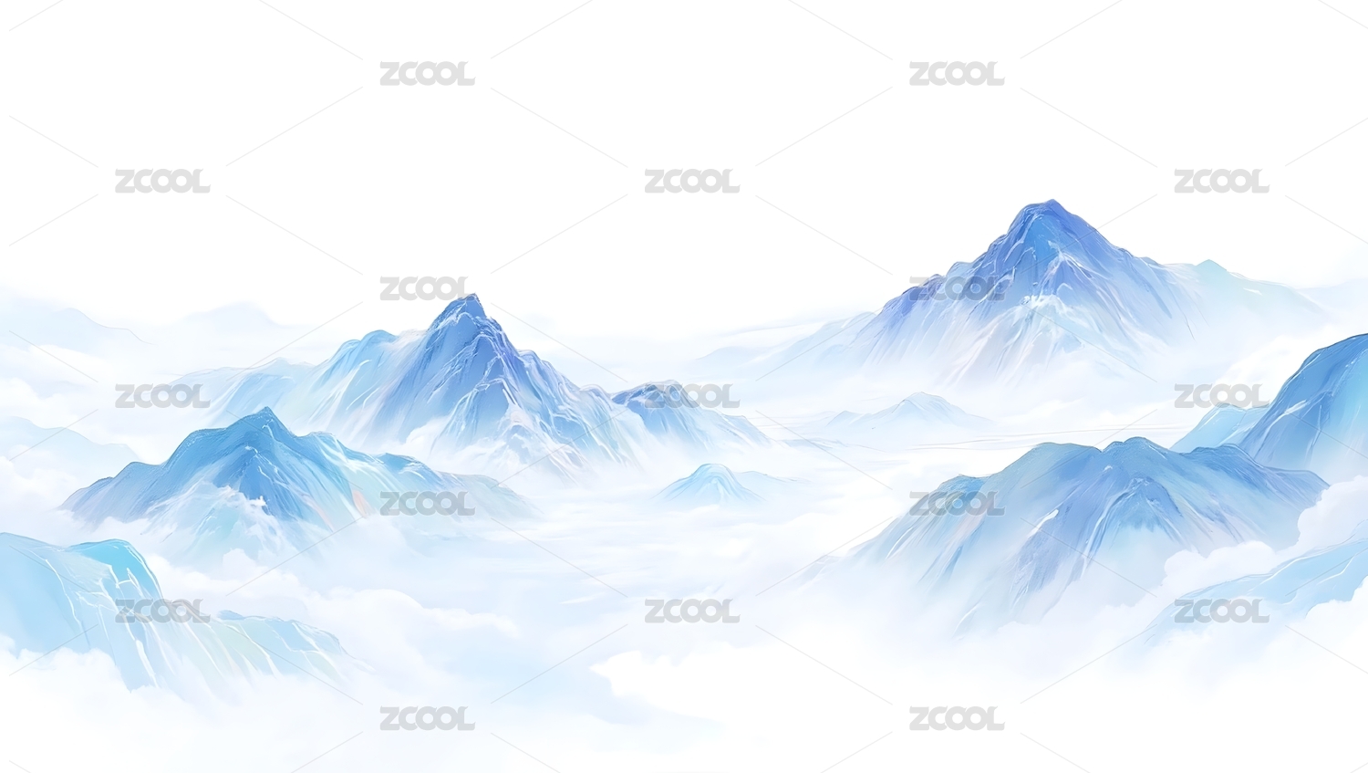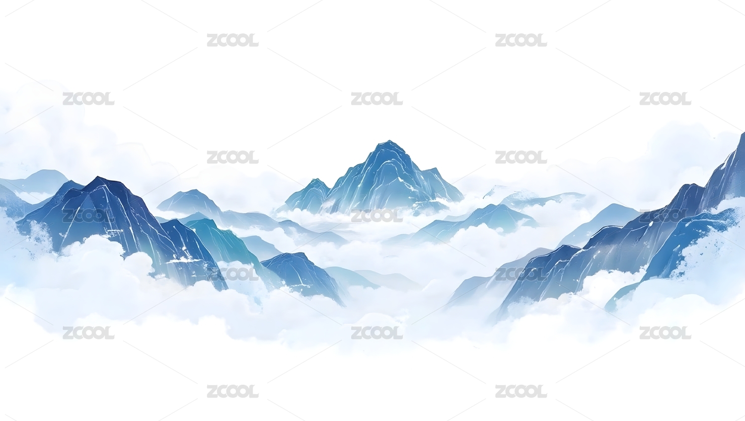 云海缭绕的蓝色山峰画卷