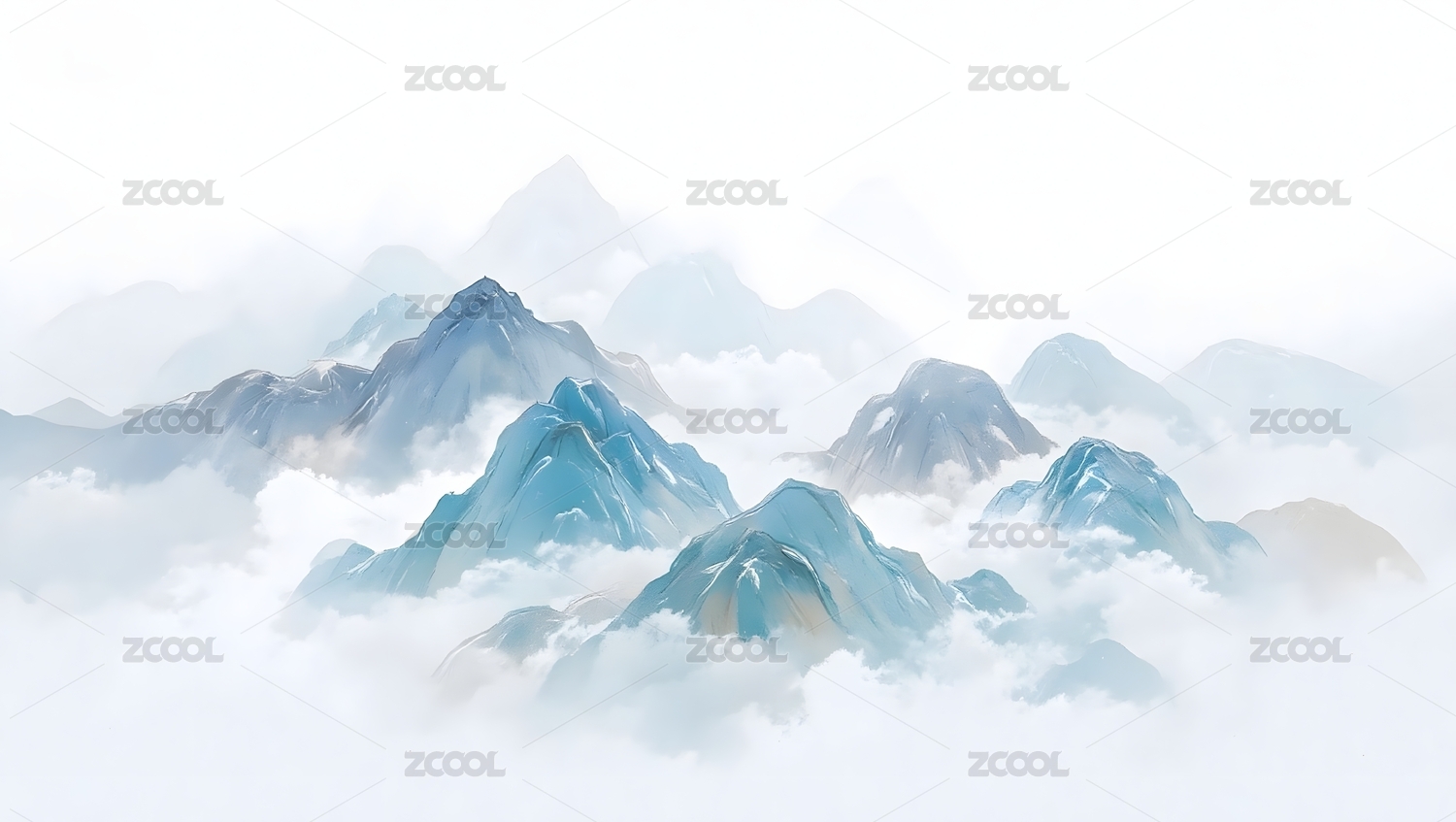 云雾缭绕的蓝色山峰画卷