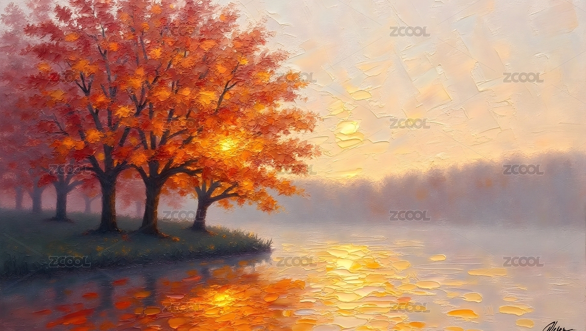 反射,背景,光线,夕阳,风景,自然,橙色,草地,湖泊,树木