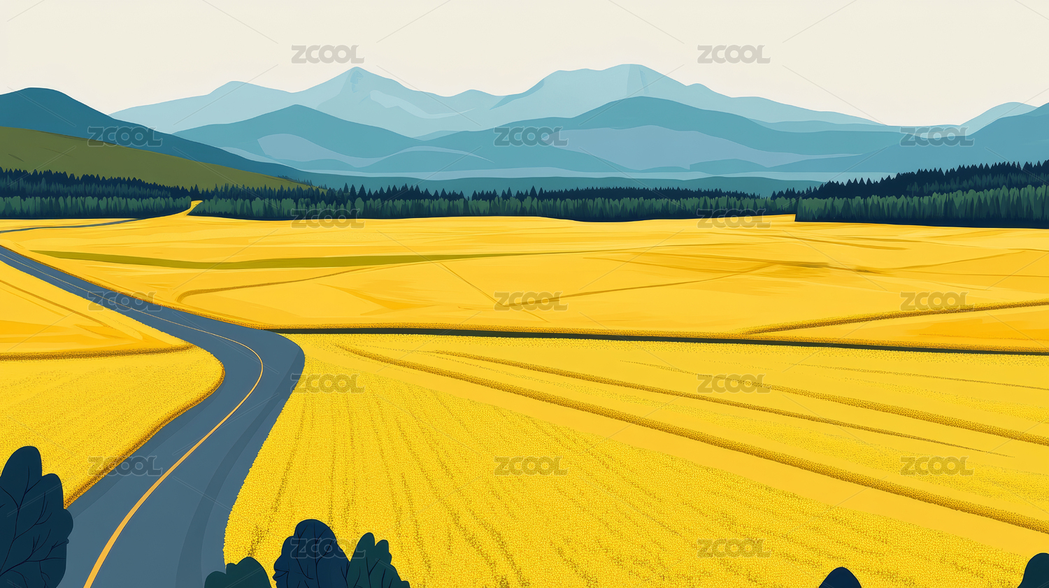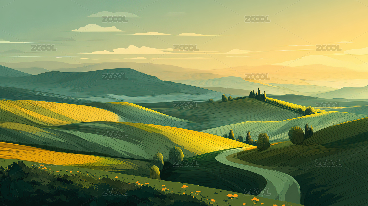 连绵起伏丘陵和黄色田野构成了充满活力景观