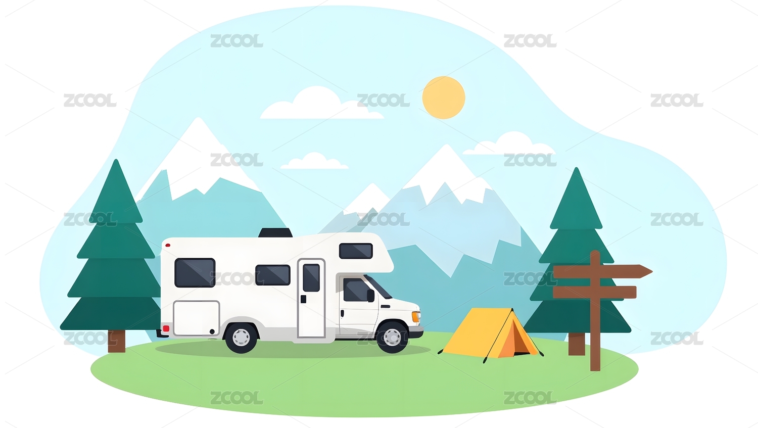 夏天大暑暑期露营帐篷野餐户外朋友社交插画