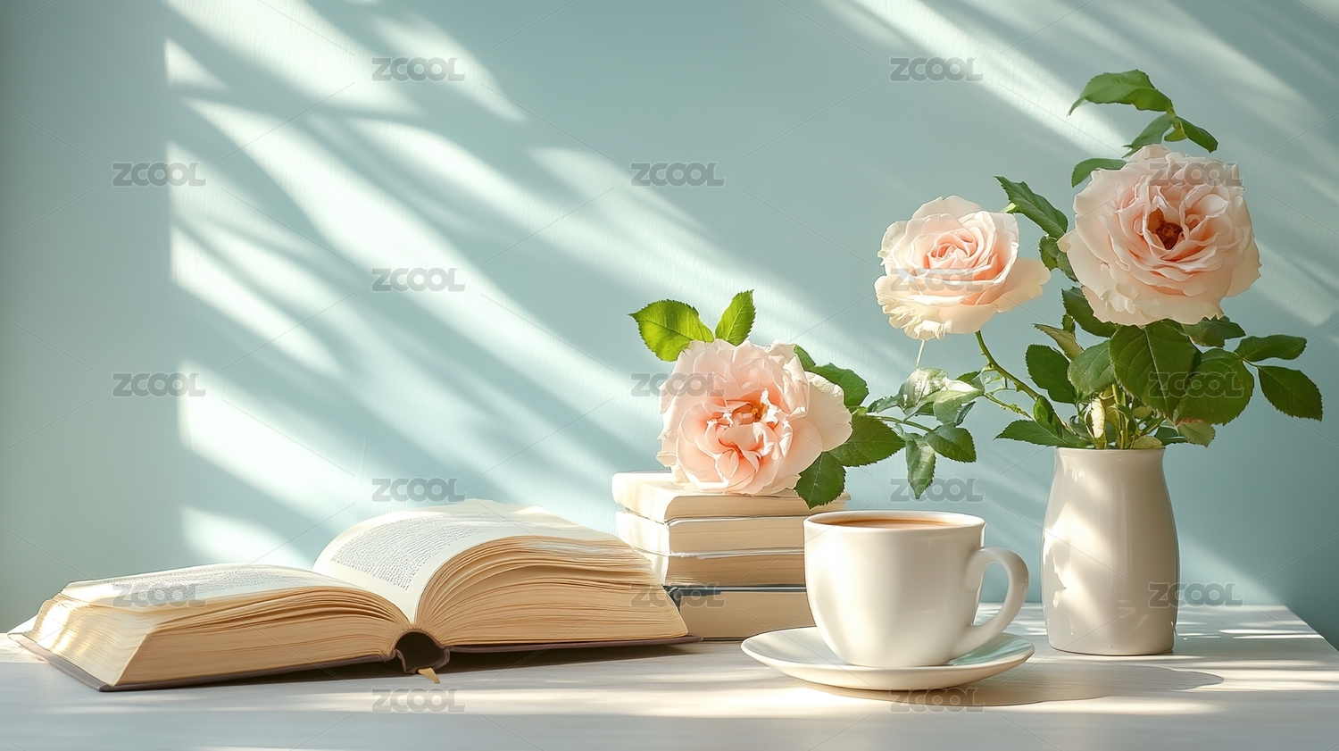 唯美玫瑰花和书本
