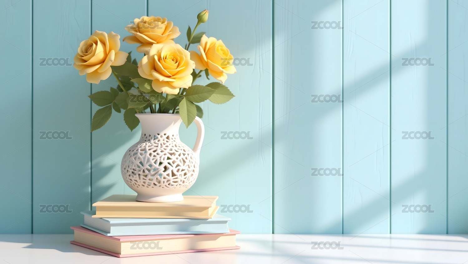 黄色玫瑰与镂空花瓶静物摆设