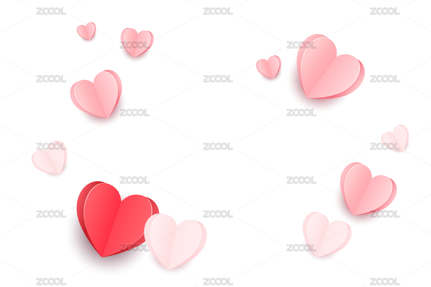 粉色爱心环绕的白色心形背景