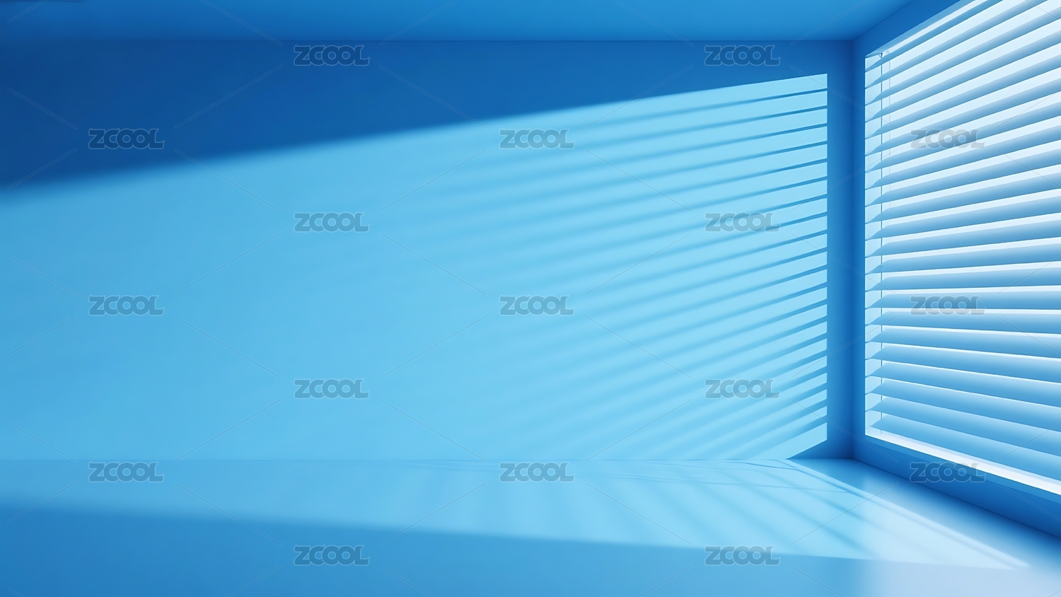 光影,蓝色,极简,室内,空间,窗户,百叶窗,阴影,墙面,地板