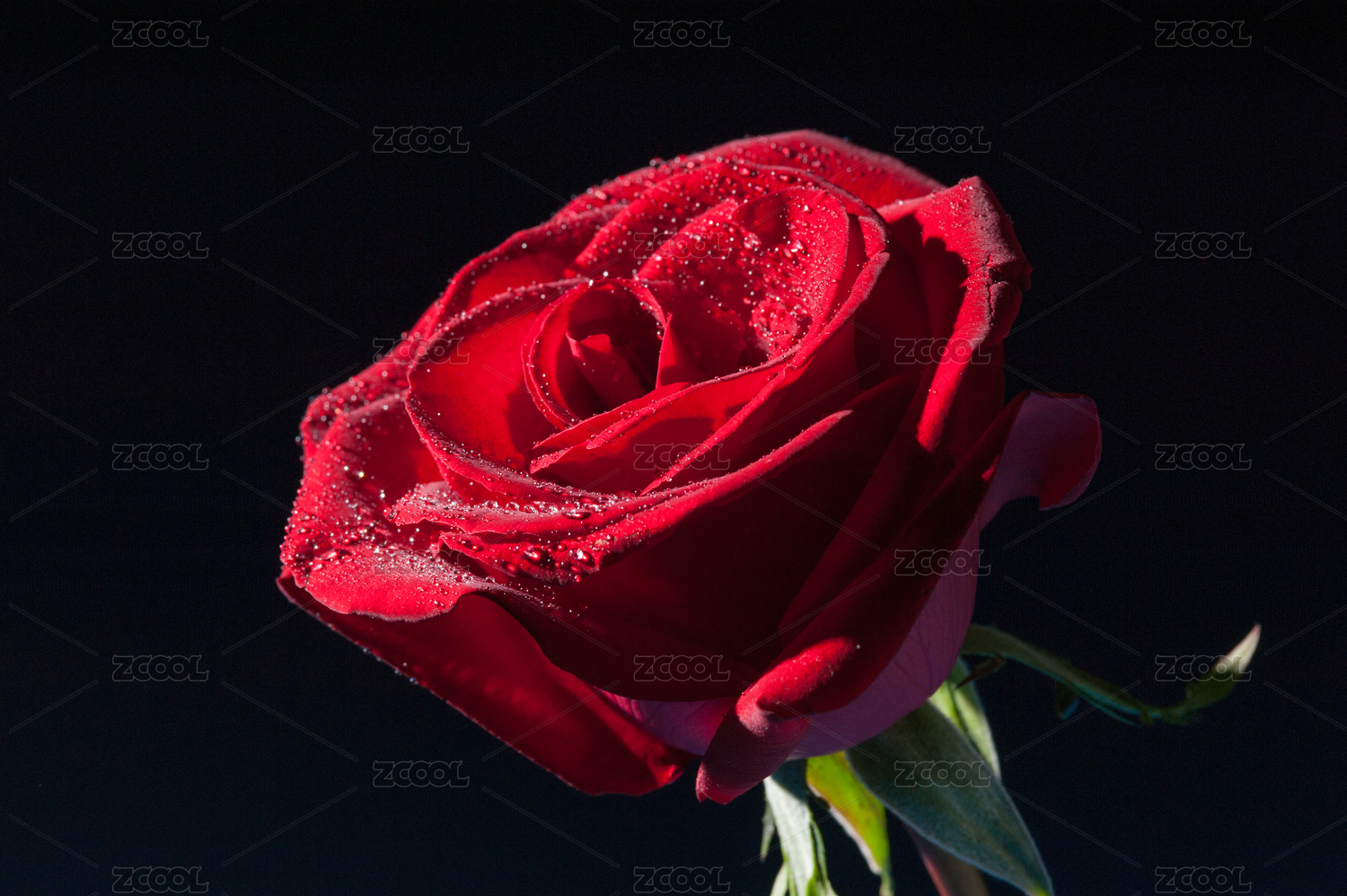 黑色背景下红玫瑰的特写镜头