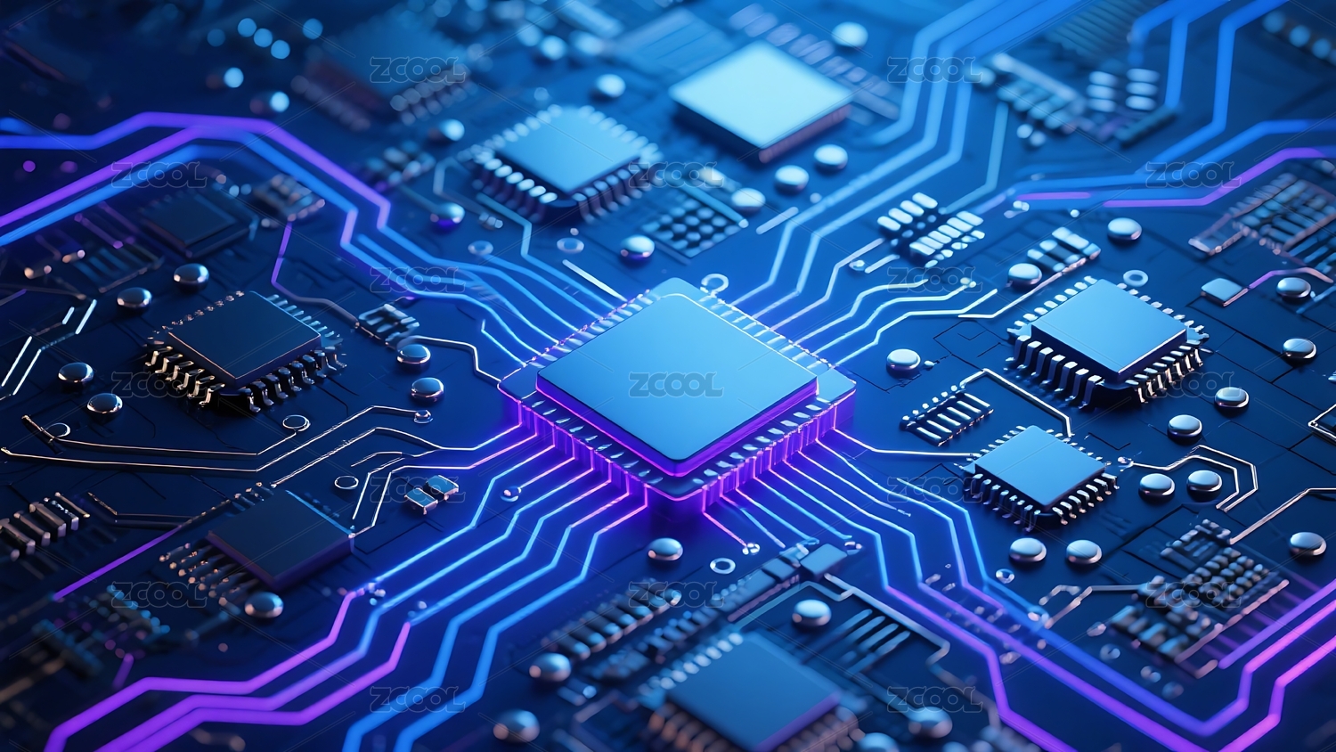 紫色处理器蓝色电路板