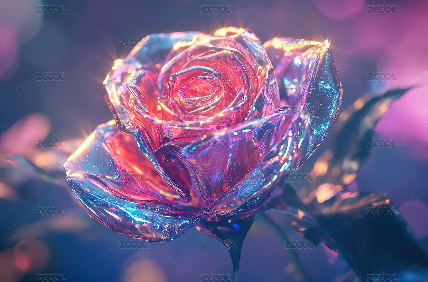 玫瑰,花朵,金属质感,幻彩,浪漫,唯美,花瓣,艺术,创意,光泽