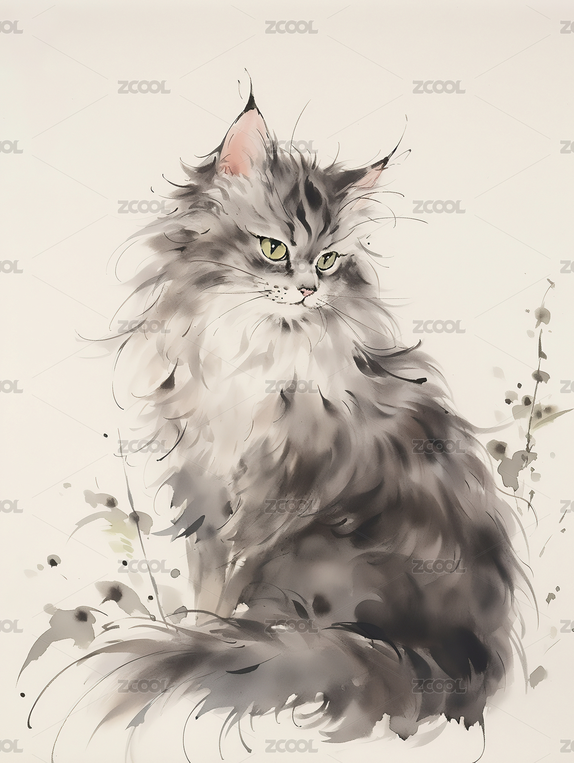 传统水墨中国画猫