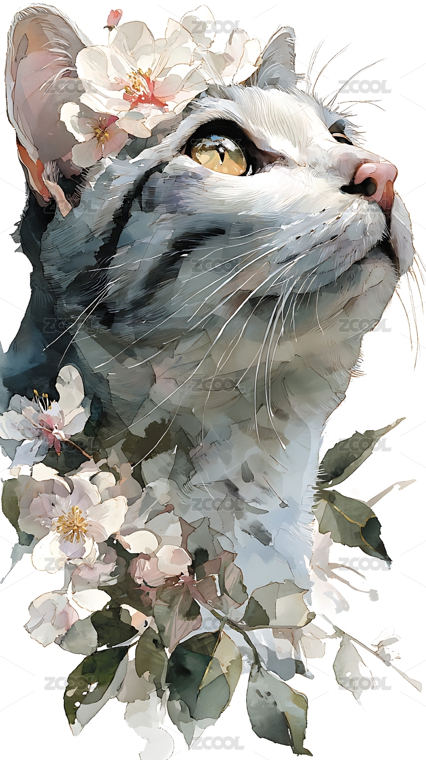 一只可爱的猫水彩插画
