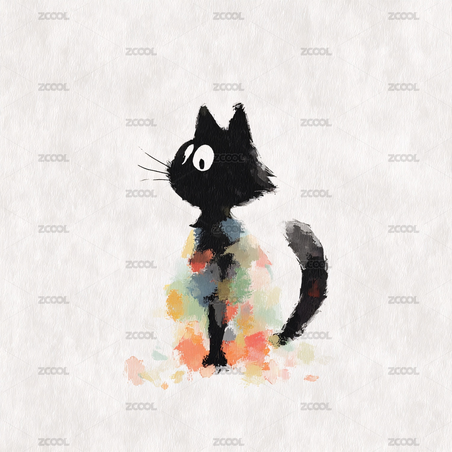 彩色水彩风格黑猫插画