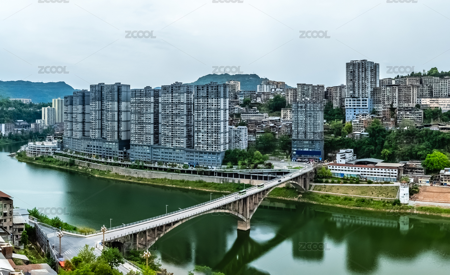 中国四川省巴中市平昌县巴河大桥高楼建筑