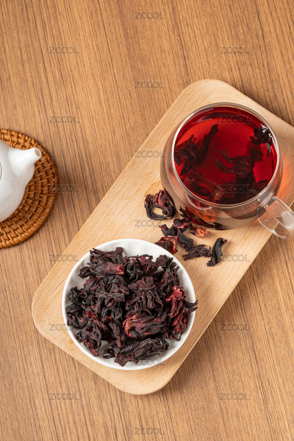 木桌背景杯养生洛神花茶