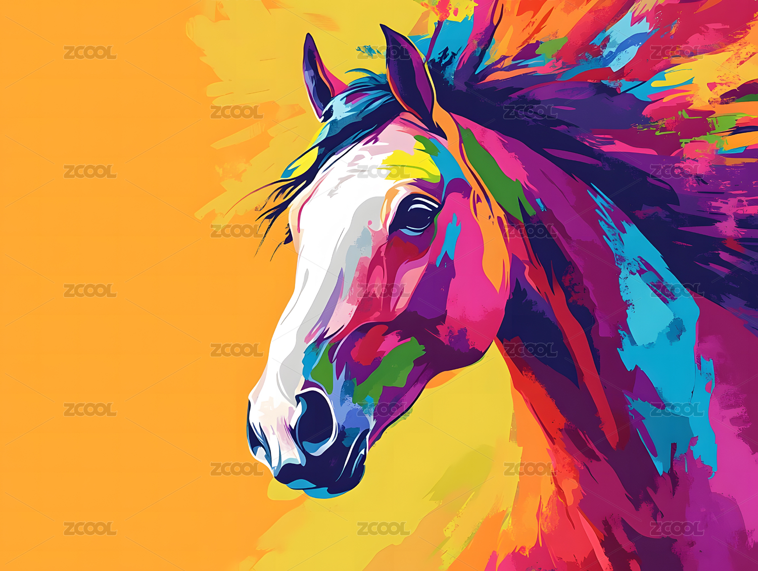 抽象风格的骏马侧影色彩斑斓背景漆黑