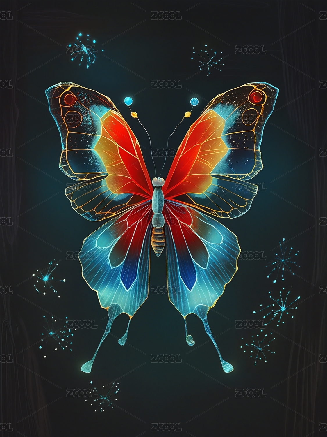 粉橙渐变蝴蝶与细腻纹理的简洁艺术画面