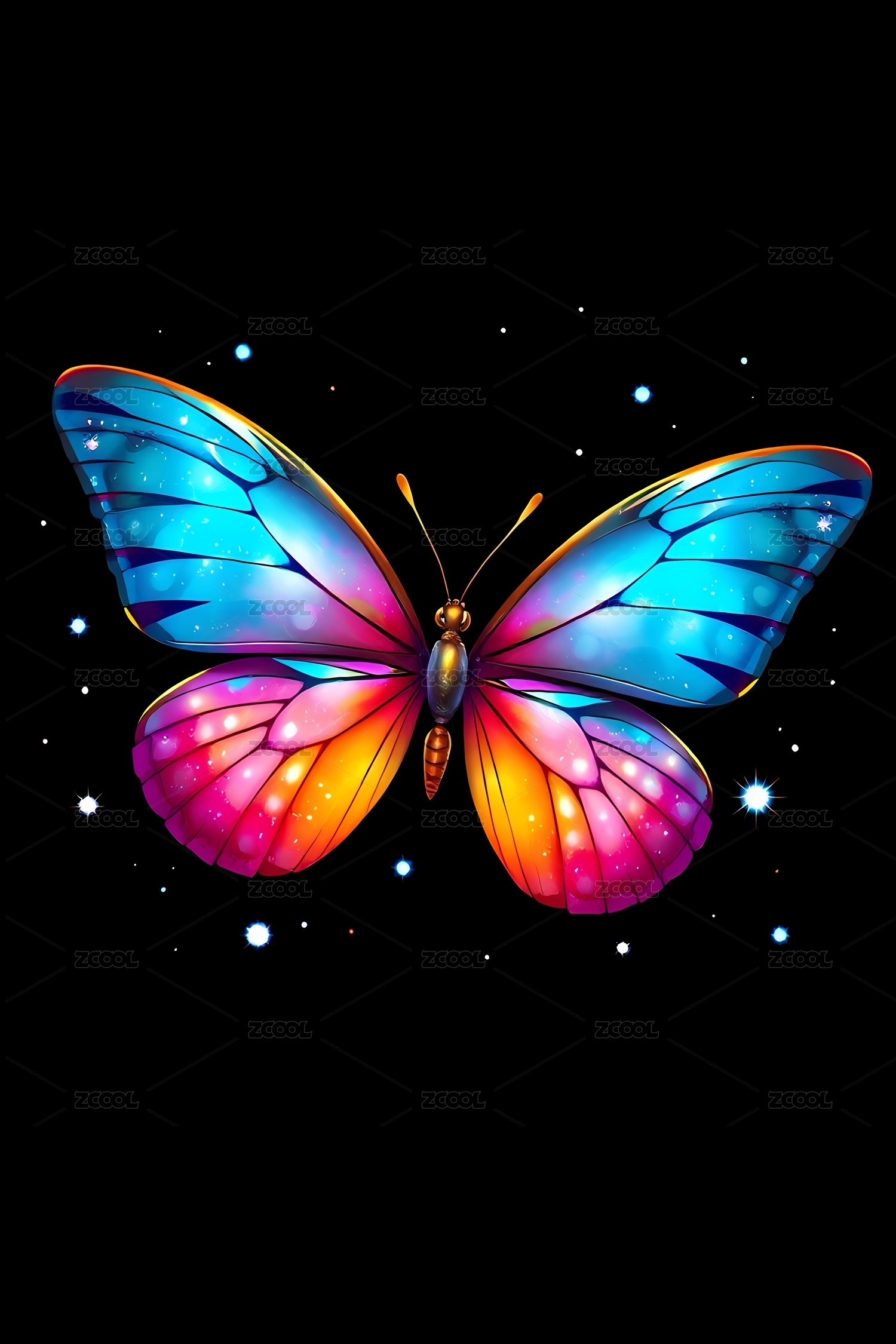 黑色背景上炫彩斑斓的梦幻蝴蝶
