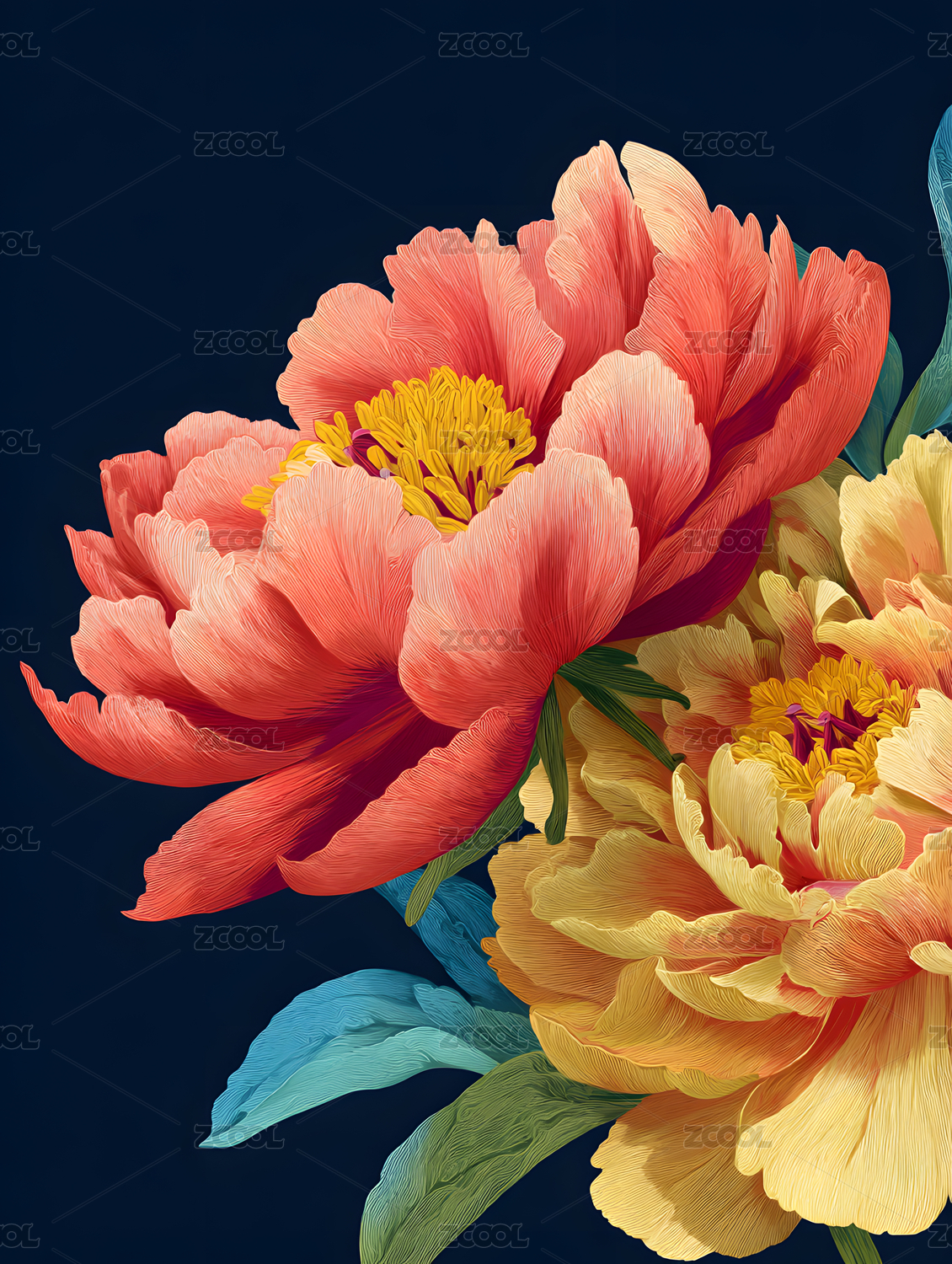 花朵,鲜花,插画,壁纸,背景,绘画,平面,特写,盛开,艳丽