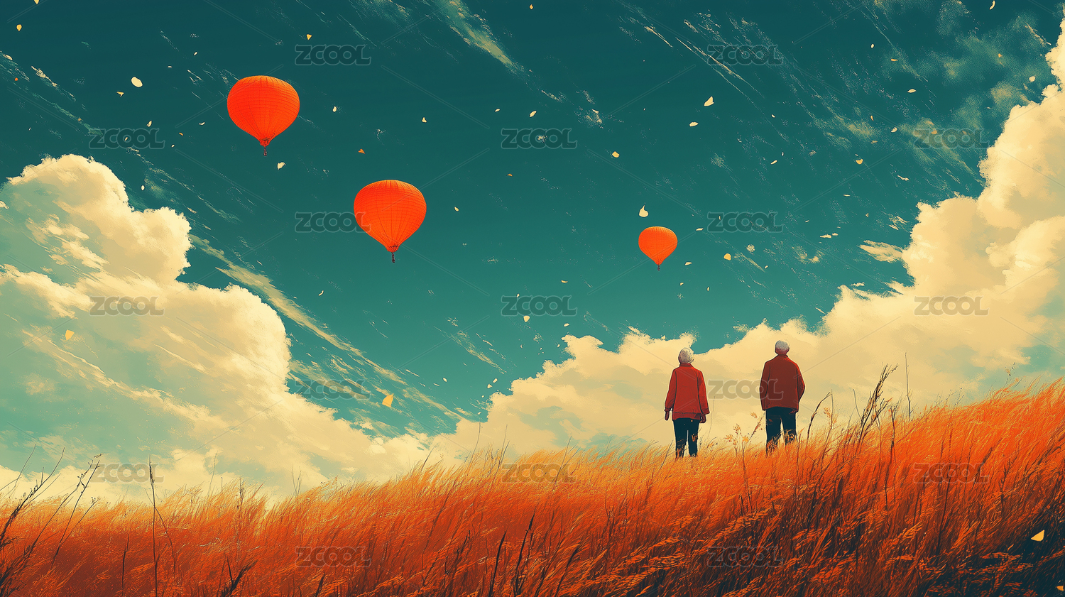 两个老人登高望远重阳节插画