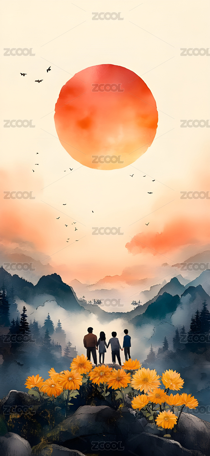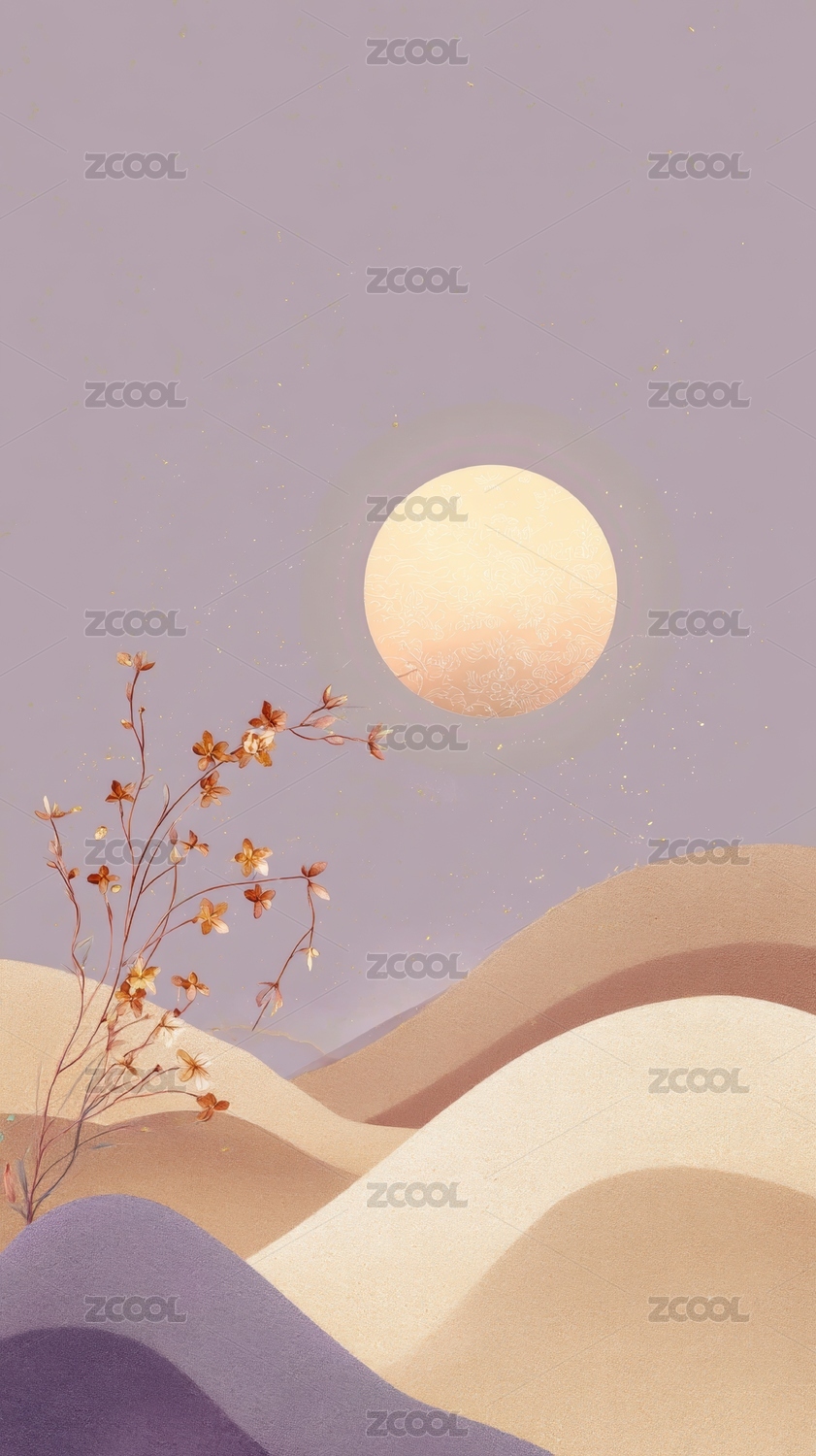 中秋,中秋节,节日,传统,赏月,月亮,插画,扁平,中国风,绘画
