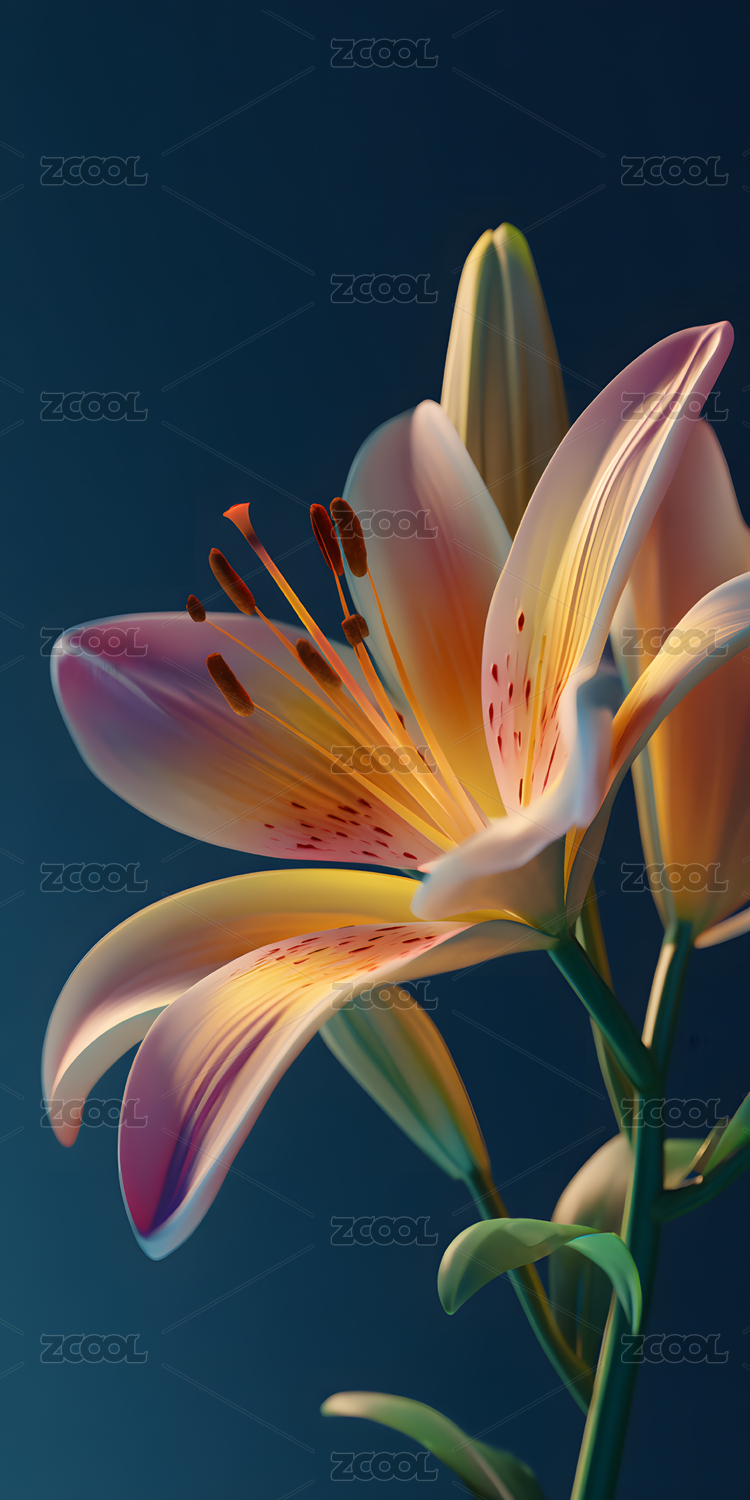 点缀着金色粒子的精致百合花