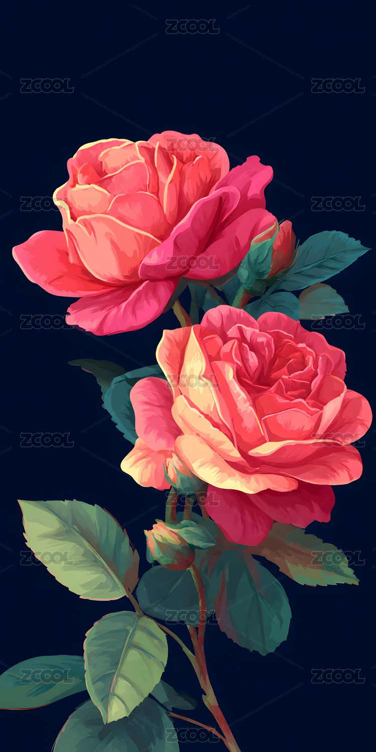 花朵,鲜花,插画,壁纸,背景,绘画,平面,特写,盛开,艳丽