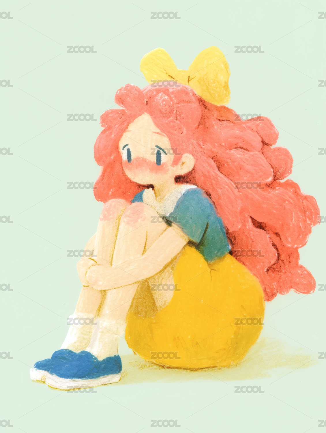 平面,插画,扁平,笔触,人物,女孩,色彩,鲜艳,蜡笔画,蜡笔