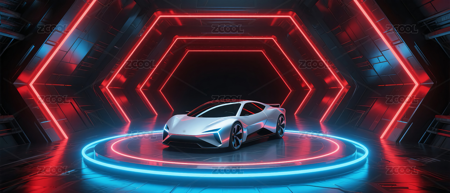 未来,新能源,电动,汽车,跑车,概念,霓虹灯,场景,三维,行驶