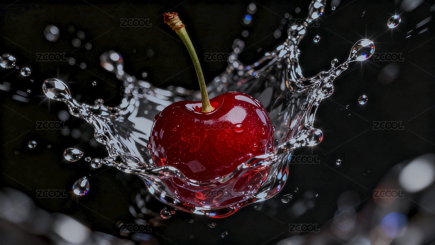 主视觉,场景,自然,背景,光影,樱桃,水滴,溅落,水果,特写