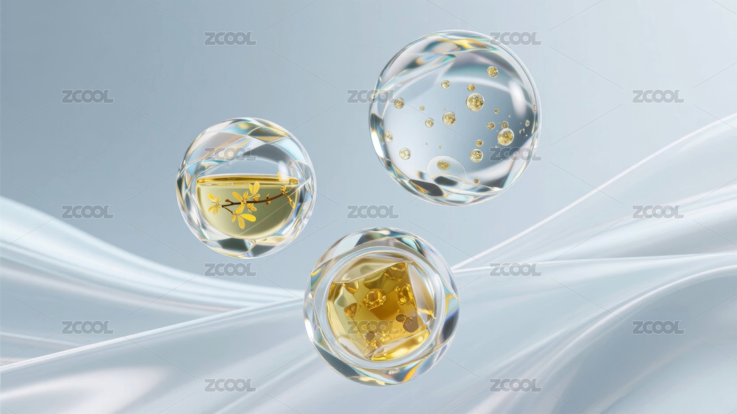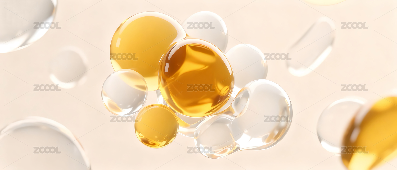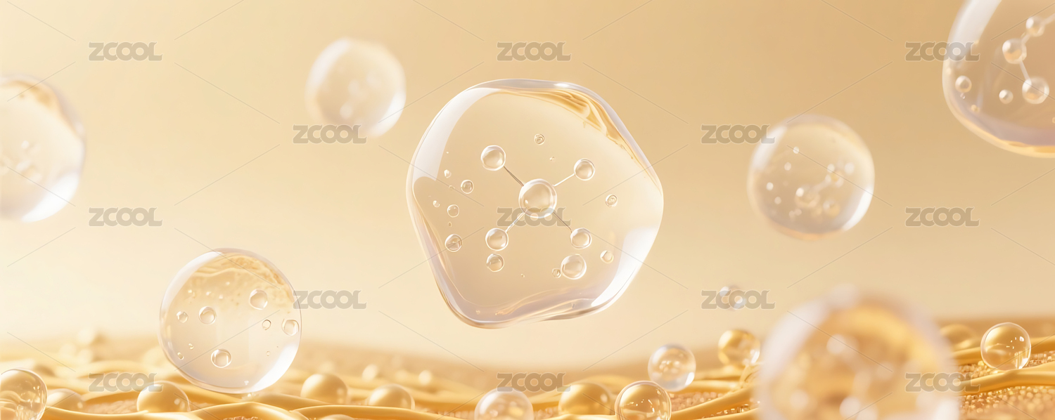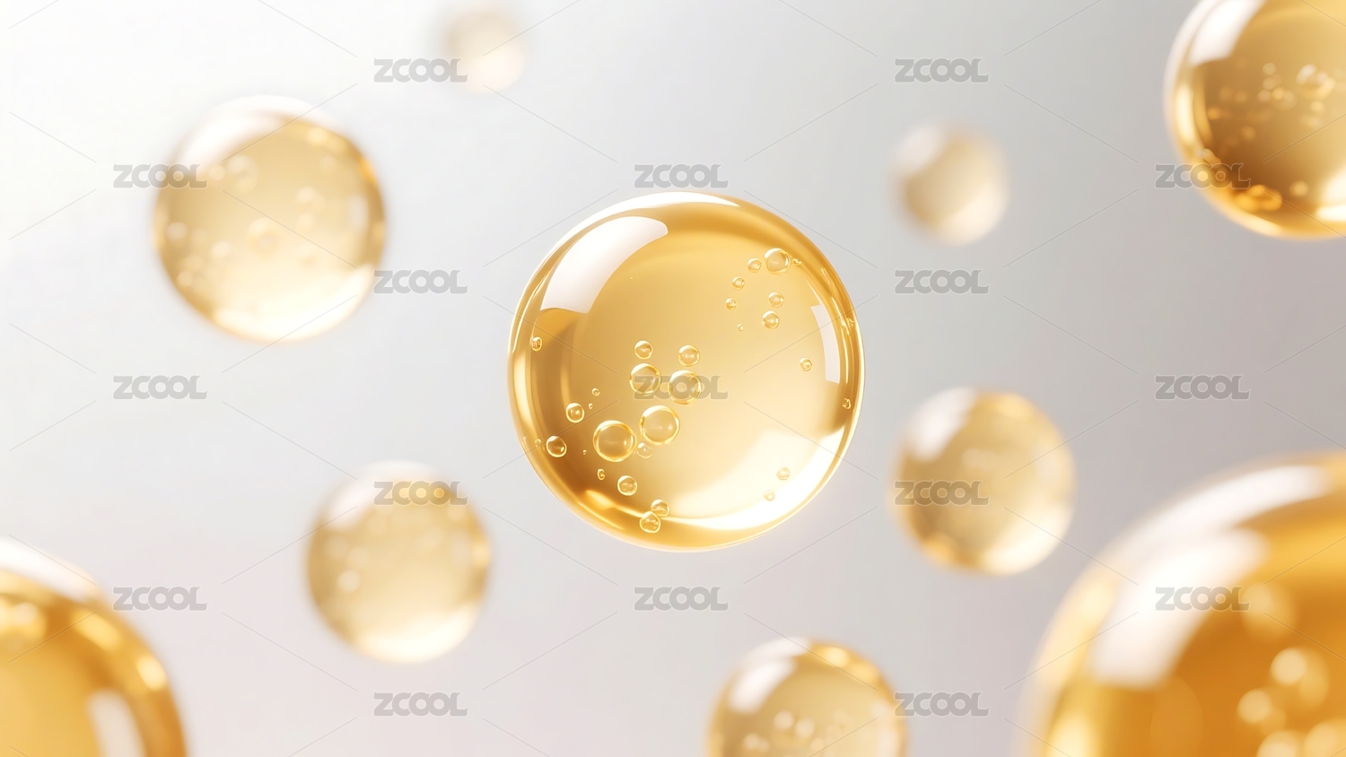 水分子,水珠,透明,晶莹剔透,成分,金色,液体,美妆,护肤,精华液