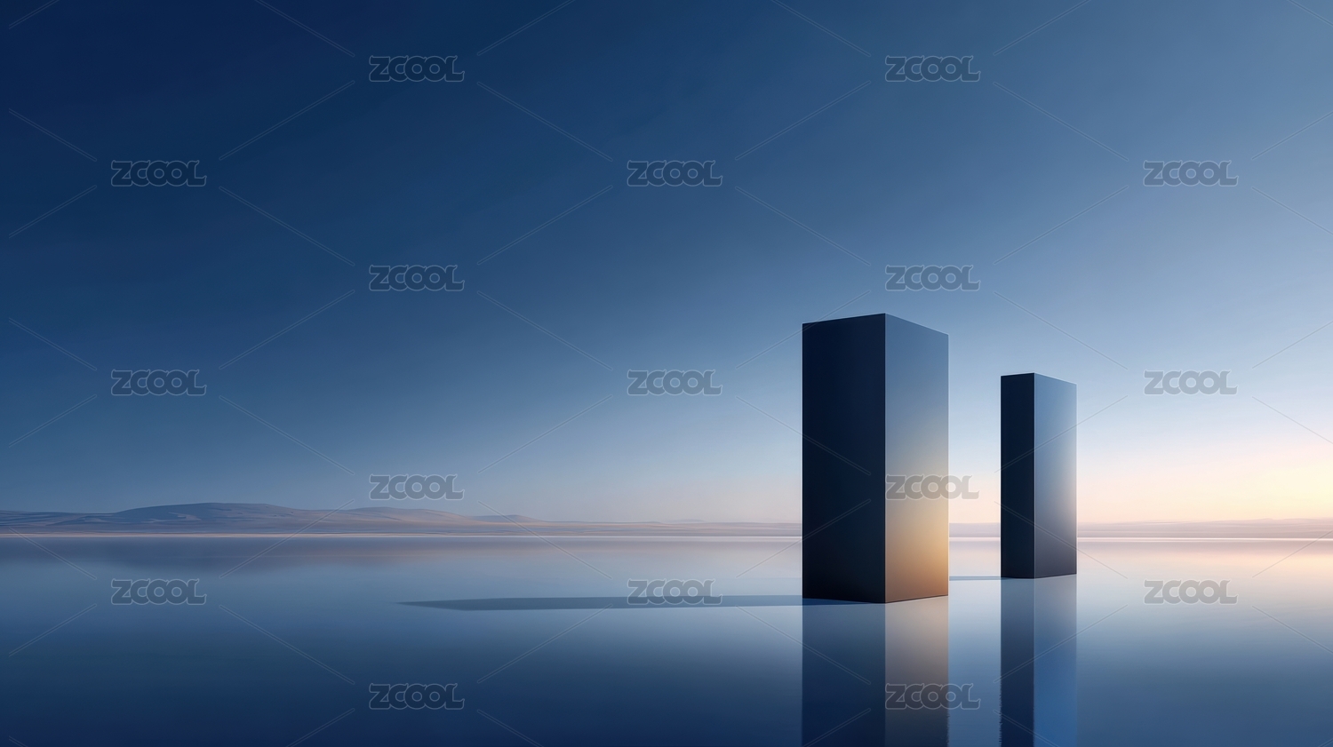 极简,滨水,建筑,海景,反射,背景,蓝天,云彩,风景,户外