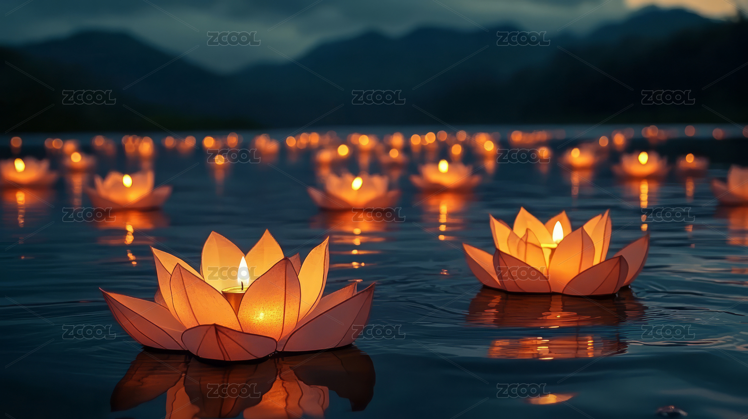 户外,天空,宁静,自然,风景,莲花灯,发光,照明,思念,中元节